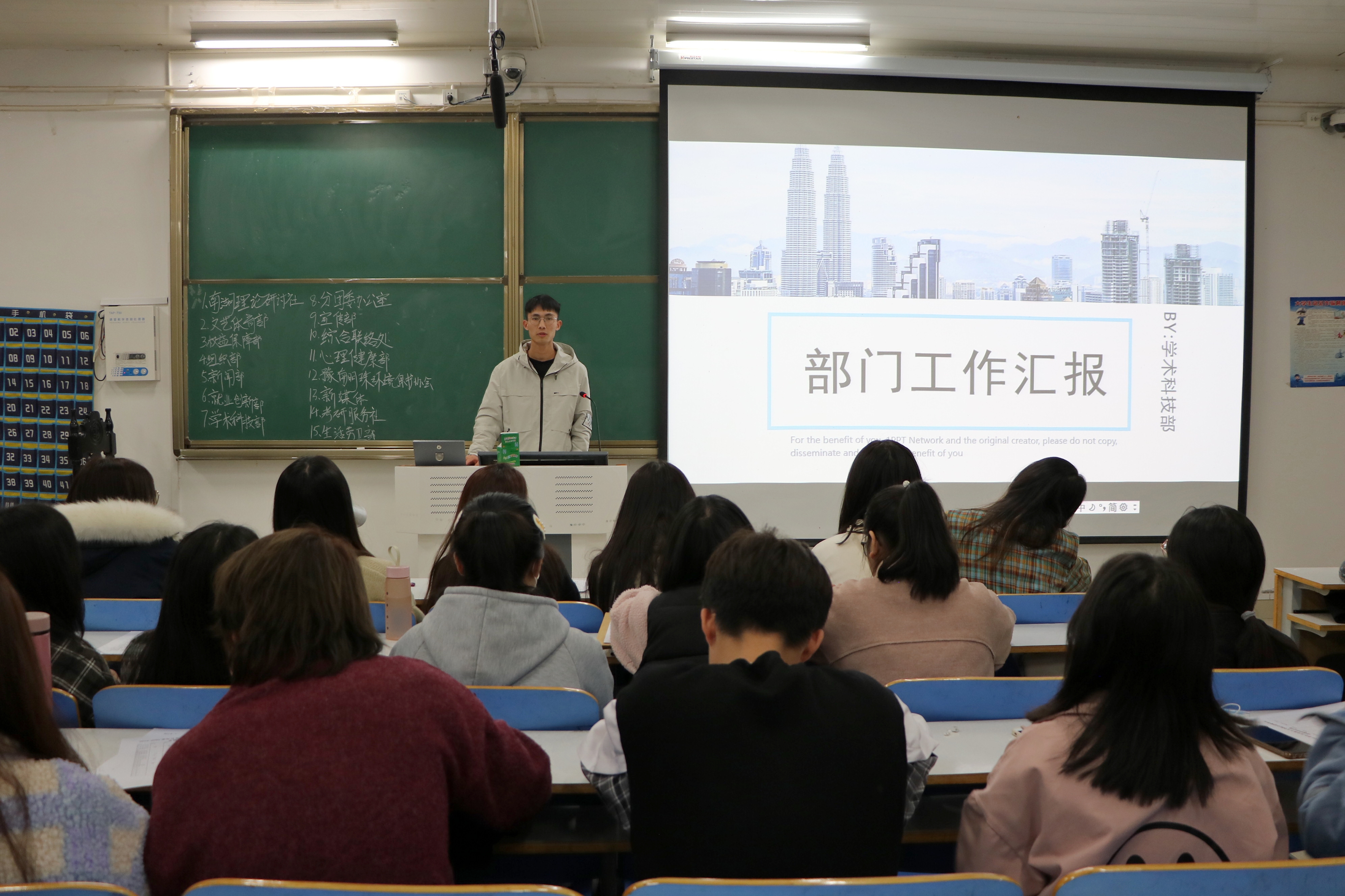 会上,文艺体育部、权益保障部、新闻部、南湖理论研讨社等15个部门及社团负责人依次上台进行工作汇报。他们运用PPT展示,围绕部门简介、部门工作、反思总结、未来展望等方面进行汇报。在上学年的工作中,各部门、社团认真履行职责,按时完成本职工作,积极与其他学院分团委员工会部门进行学习交流,不断总结优秀经验,提升自身工作能力。同时,各部门、社团负责人对上学年部门工作中存在的工作效率不高、缺勤等问题进行了自我检讨与反思。他们表示,在以后的工作中,会继续坚持为学院服务,为员工服务的原则,认真完成学院交代的每一项任务。此次分团委员工会联评采取综合评分制度,会后,由分团委收集评分表并进行分数汇总公布。