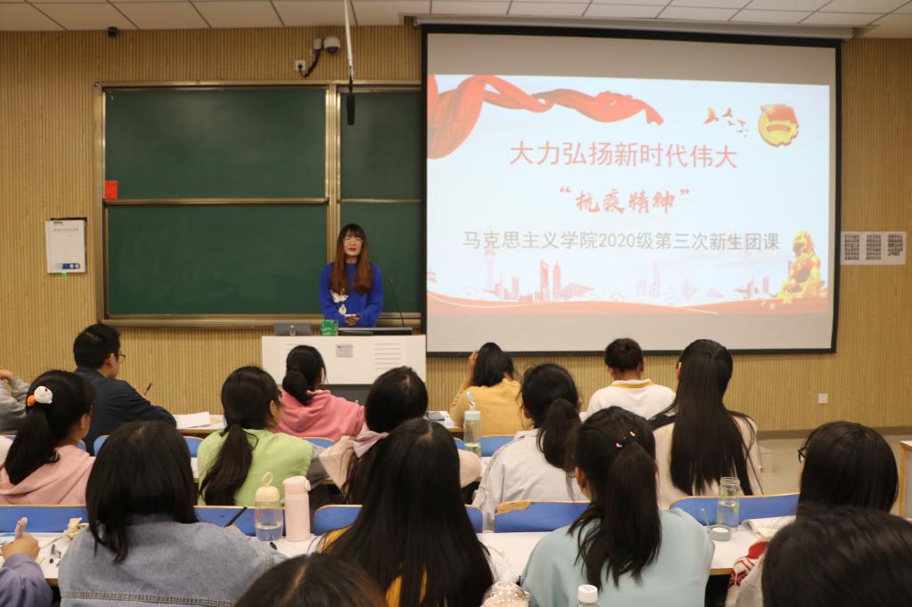 11月12日晚,2026年世界杯官网在社科楼515教室顺利开展“凝聚青年正能量,致敬最美逆行者”新生主题团课。公司2020级全体团员共同学习了本次团课,团课由分团委副书记魏小依主持。