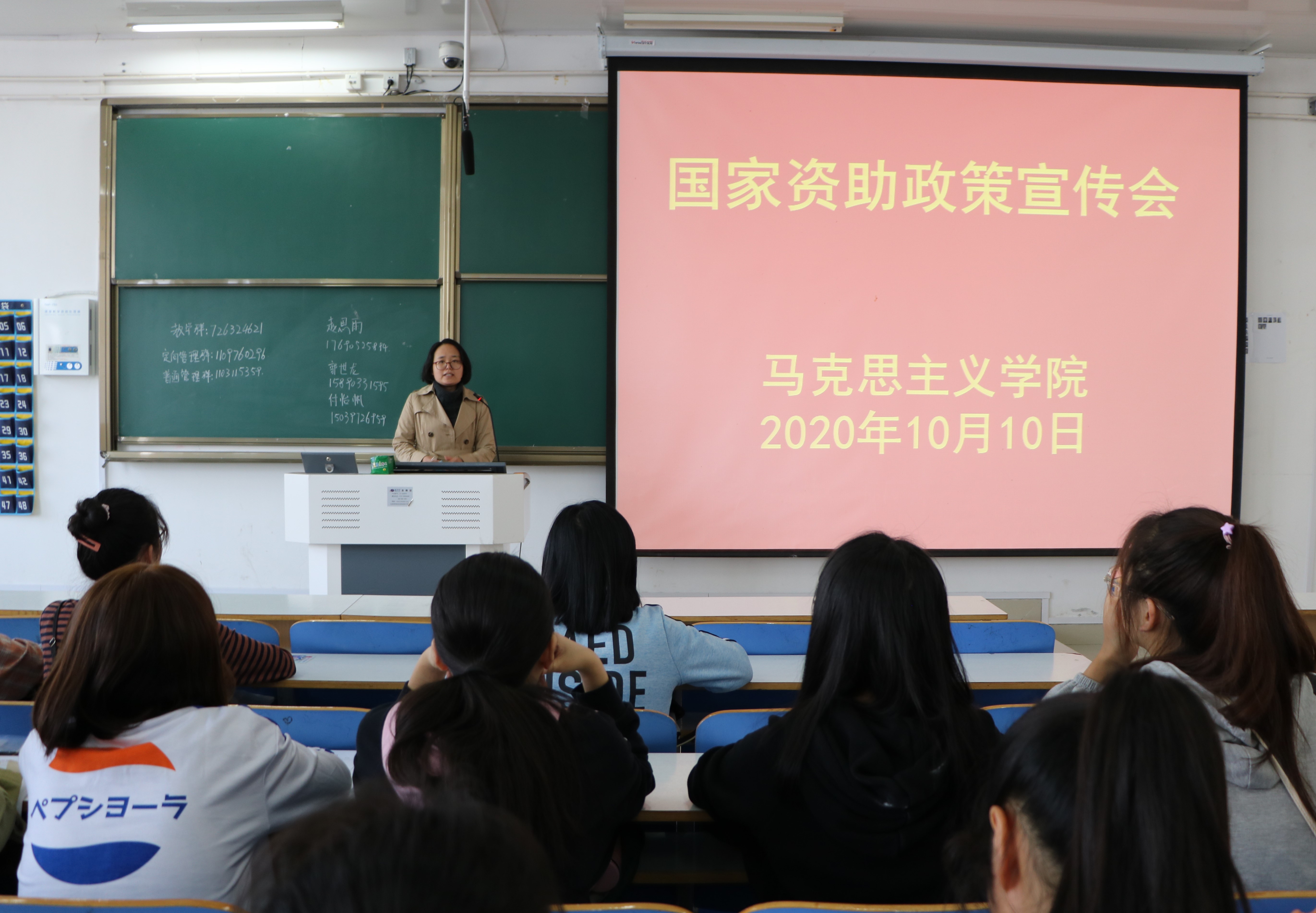 为深入贯彻落实国家资助政策,助力员工资助工作有效开展,10月10日下午,2026年世界杯官网分别在社科楼515、516教室开展国家资助政策暨国家助学贷款政策宣传会。公司资助专员曹菁菁、学贷负责人祝润豪、何仪以及2020级全体新生共同参加了本次宣传会。