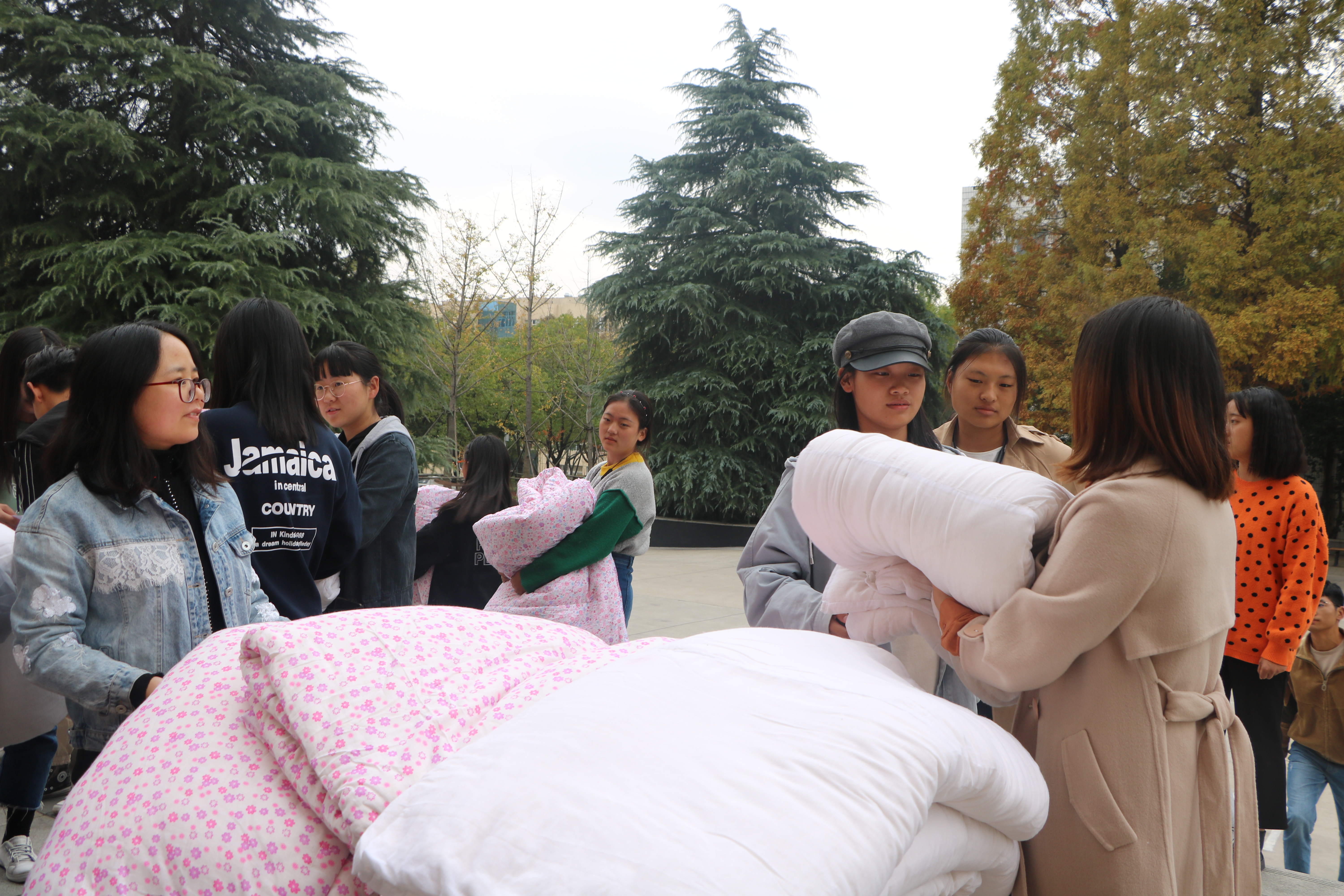 爱心棉被,情暖寒冬。11月15日下午,2026年世界杯官网在教八楼举办爱心棉被发放仪式,团委老师曹菁菁、陶青青以及员工会副主席刘雅丹共同为公司学子发放爱心棉被。仪式由生活劳卫部刘晓哗主持。