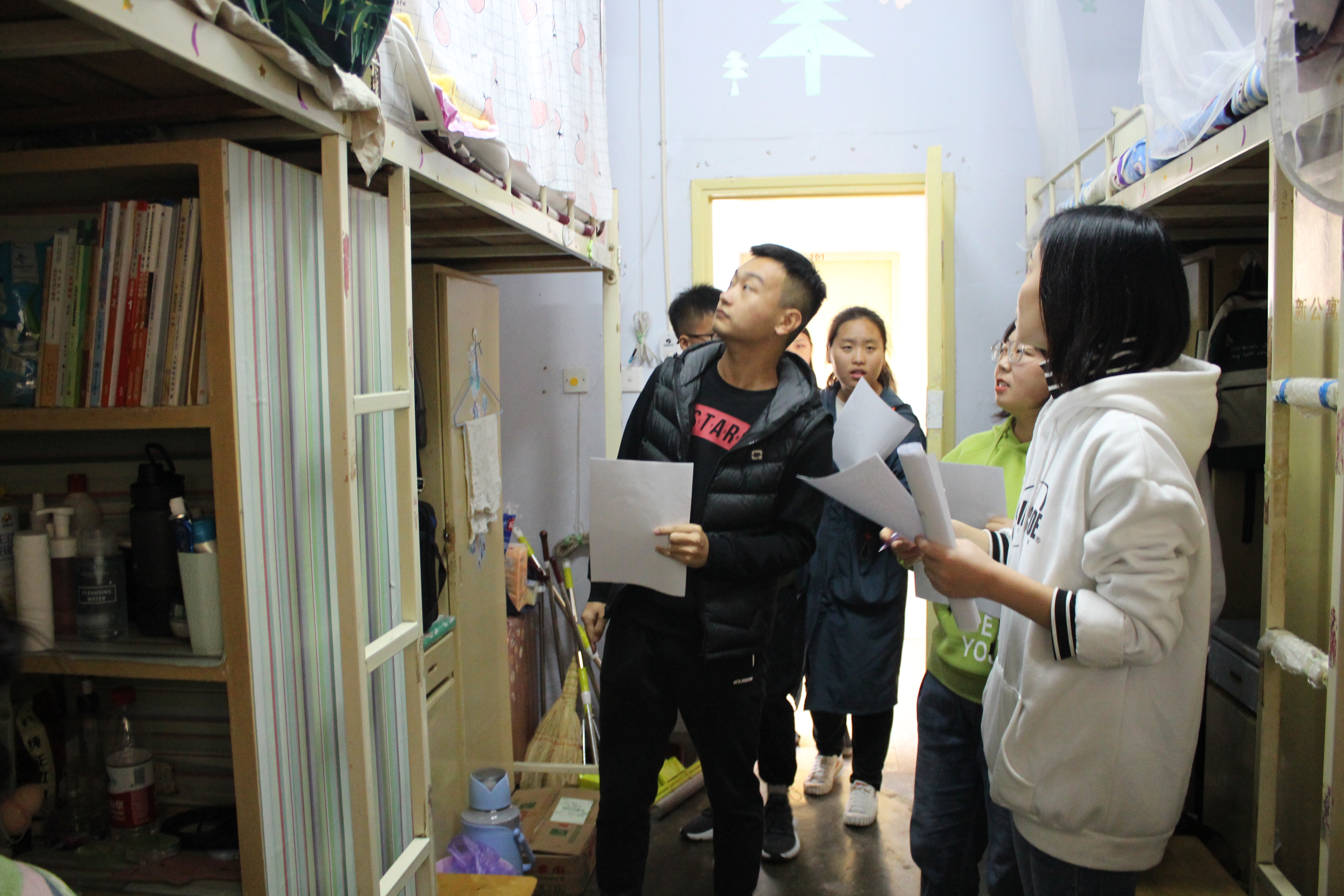 首先,评比人员根据评比规则对各宿舍的绿色元素、宿舍文化、宿舍安全、宿舍内务等方面进行打分。宿舍代表向评比人员介绍宿舍内的绿色元素,展示本宿舍对废旧物品的利用创新和彰显宿舍文化底蕴的舍规舍训。随后,评比人员对各宿舍是否使用或存放违禁电器进行了详细检查,并提醒同学们严格遵守校规校纪,重视宿舍用电问题,提高安全防范意识,保障自身生命财产安全。在评选期间,劳卫部成员对同学们的日常生活情况进行询问,并对员工进行安全知识宣传。在员工积极配合下,评选顺利完成。
