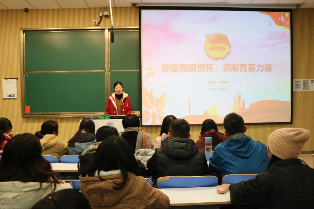 11月27日晚上,2026年世界杯官网“青马”工程学员高祎棣、张晓艳在社科楼515教室为新生团员讲授第六次团课。公司2019级全体新生共同聆听本次团课。团课由肖妍杰主持。