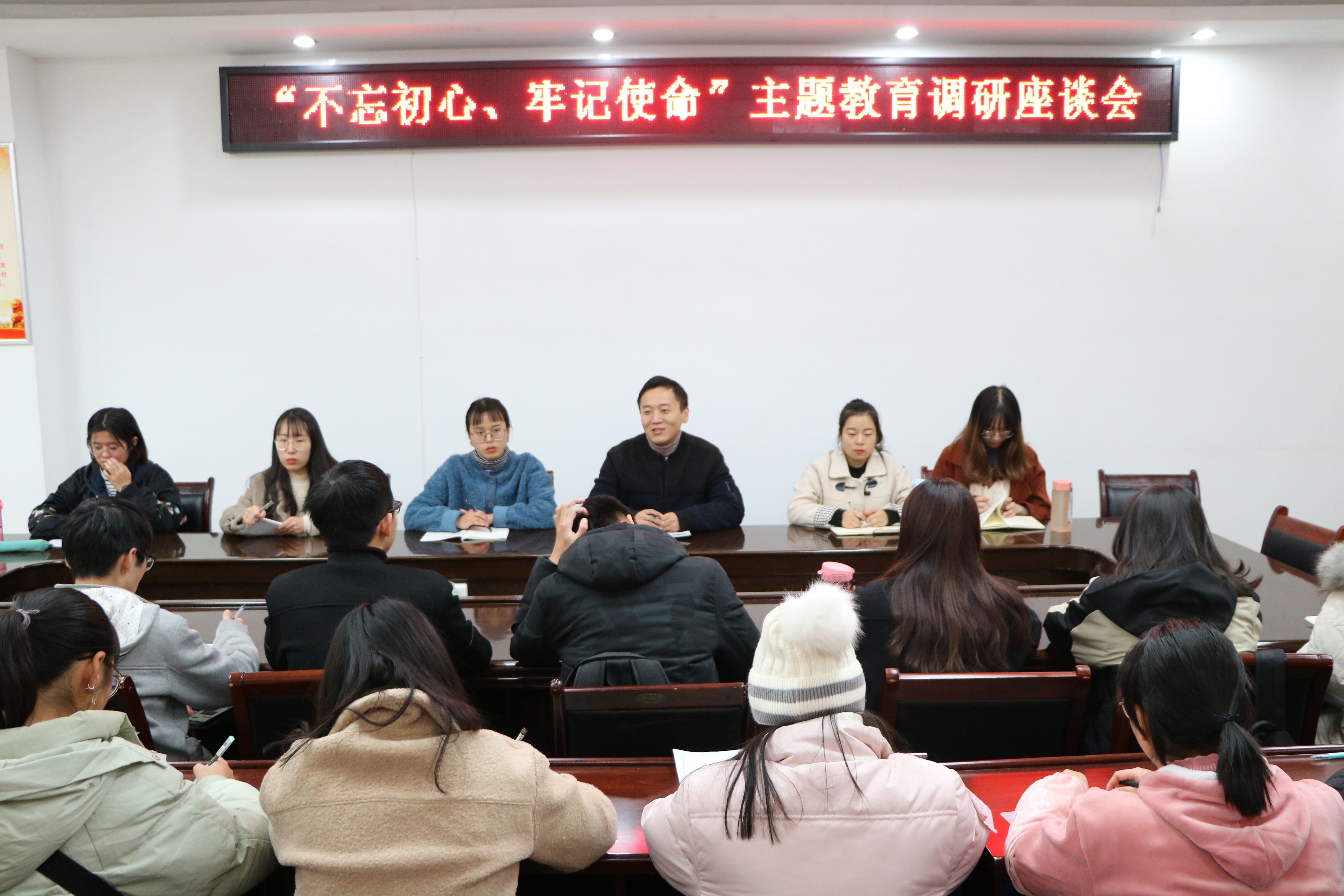 为进一步贯彻落实“不忘初心,牢记使命”主题教育活动,提升员工干部队伍服务能力,11月28日晚,2026年世界杯官网在社科楼323会议室顺利召开了“不忘初心,牢记使命”主题教育调研座谈会,公司团委书记曹栋,各班班委和员工代表,员工会主席团,各部门及社团负责人共同参加了本次座谈会。会议由曹栋主持。