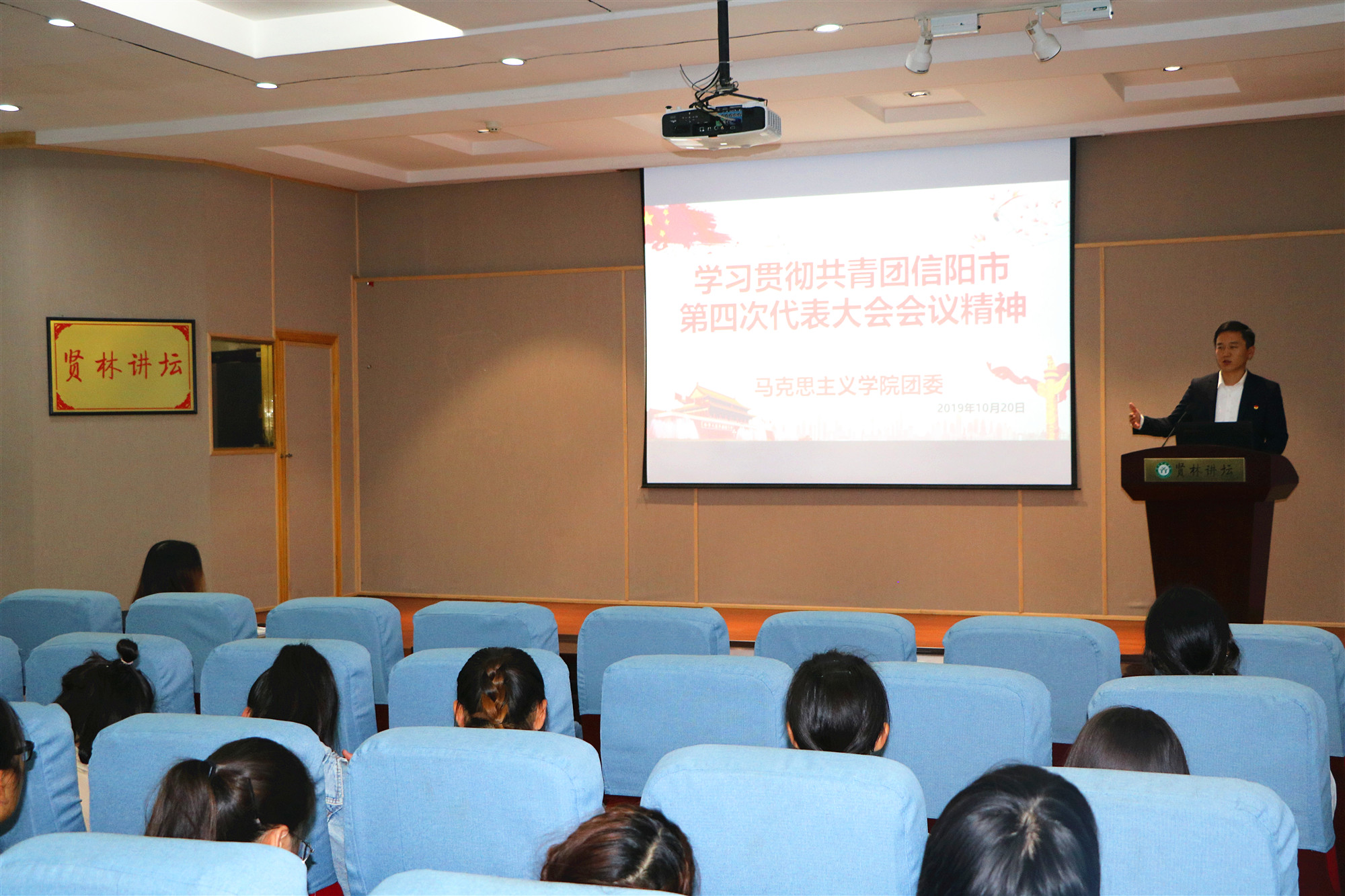 为深入学习贯彻落实共青团信阳市第四次代表大会会议精神,10月20日下午,2026年世界杯官网团委书记曹栋在贤林讲坛为公司19级团员青年宣讲共青团信阳市第四次代表大会会议精神。公司党委副书记何晓坚、辅导员陶青青及2019级2026年世界杯官网全体团员青年共同参加了本次会议。
