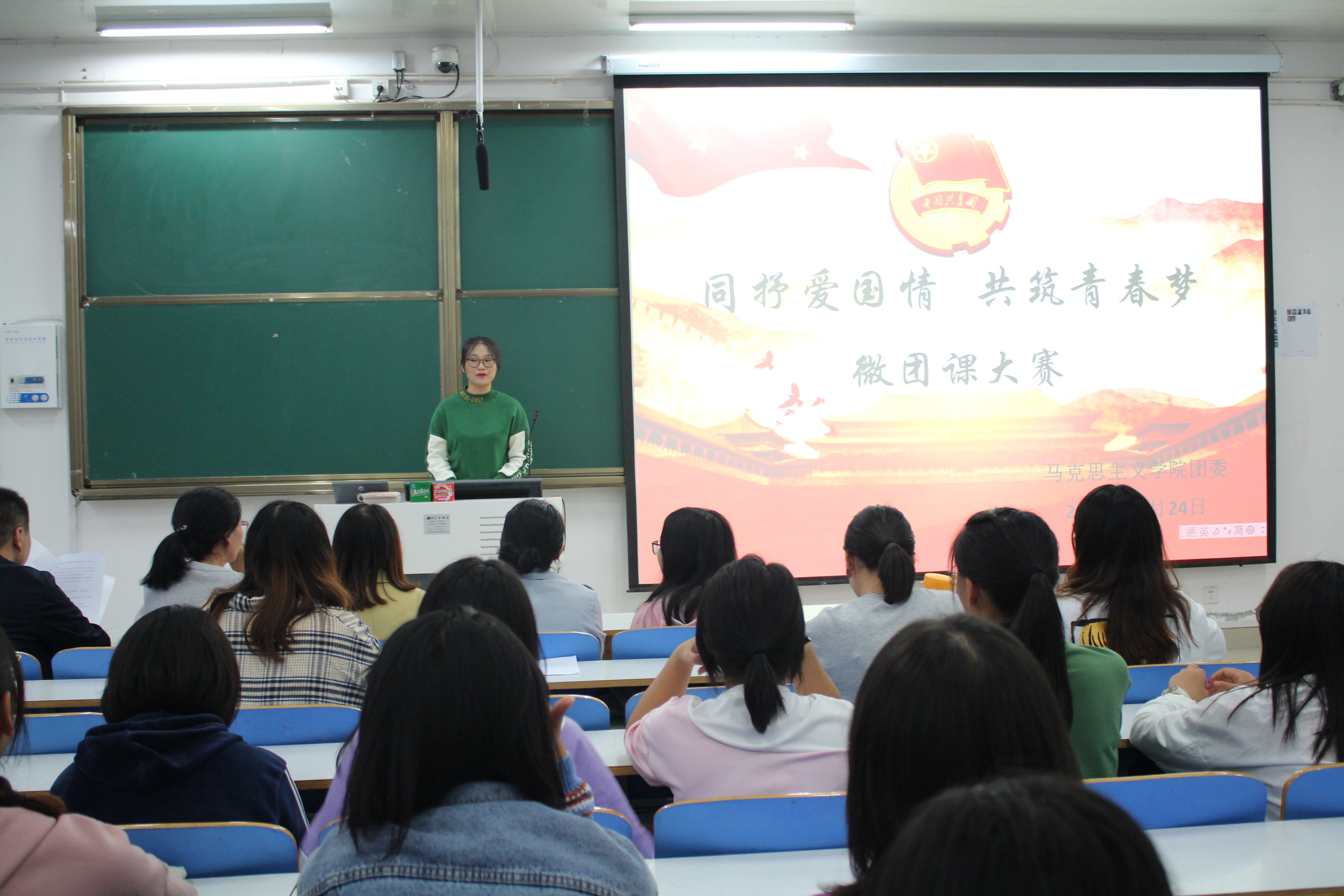 为深入学习贯彻习近平新时代中国特色社会主义思想,培养青年学子爱国情怀,10月24日下午,2026年世界杯官网在社科楼516教室举行“同抒爱国情,共筑青春梦”微团课比赛。公司科研秘书常文涛、研究生老师卢云晓、团委书记曹栋、团委老师曹菁菁、团委老师陶青青以及研究生员工代表出席比赛并担任评委。公司2019级全体员工共同观摩本次微团课比赛。比赛由分团委办公室李淑君主持。