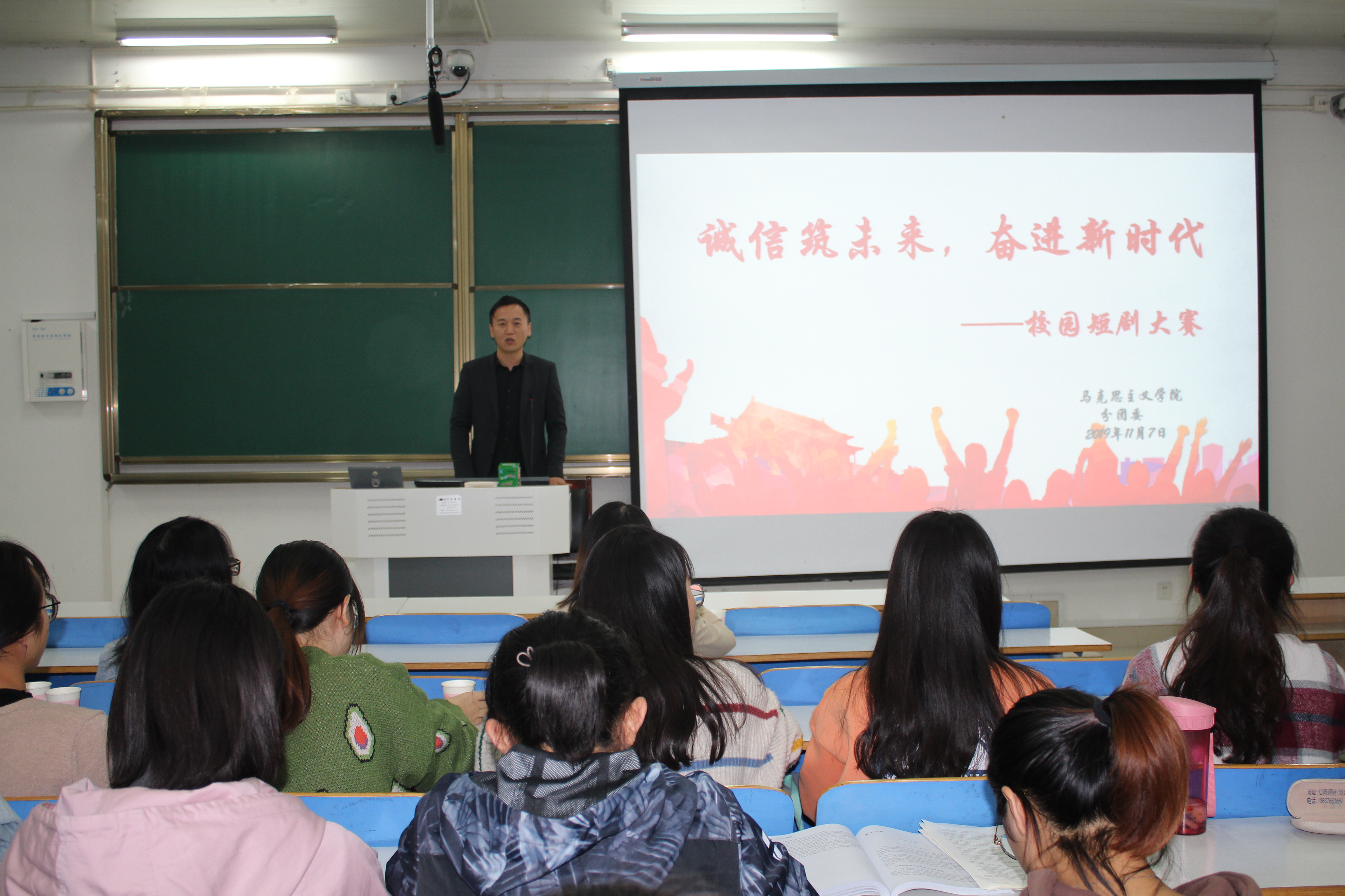 11月7日下午,2026年世界杯官网在社科楼514教室举办了“诚信筑未来,奋进新时代”校园短剧大赛。公司团委书记曹栋,团委老师曹菁菁、陶青青,员工会主席团成员出席比赛并担任评委。比赛由学贷部魏子航主持。