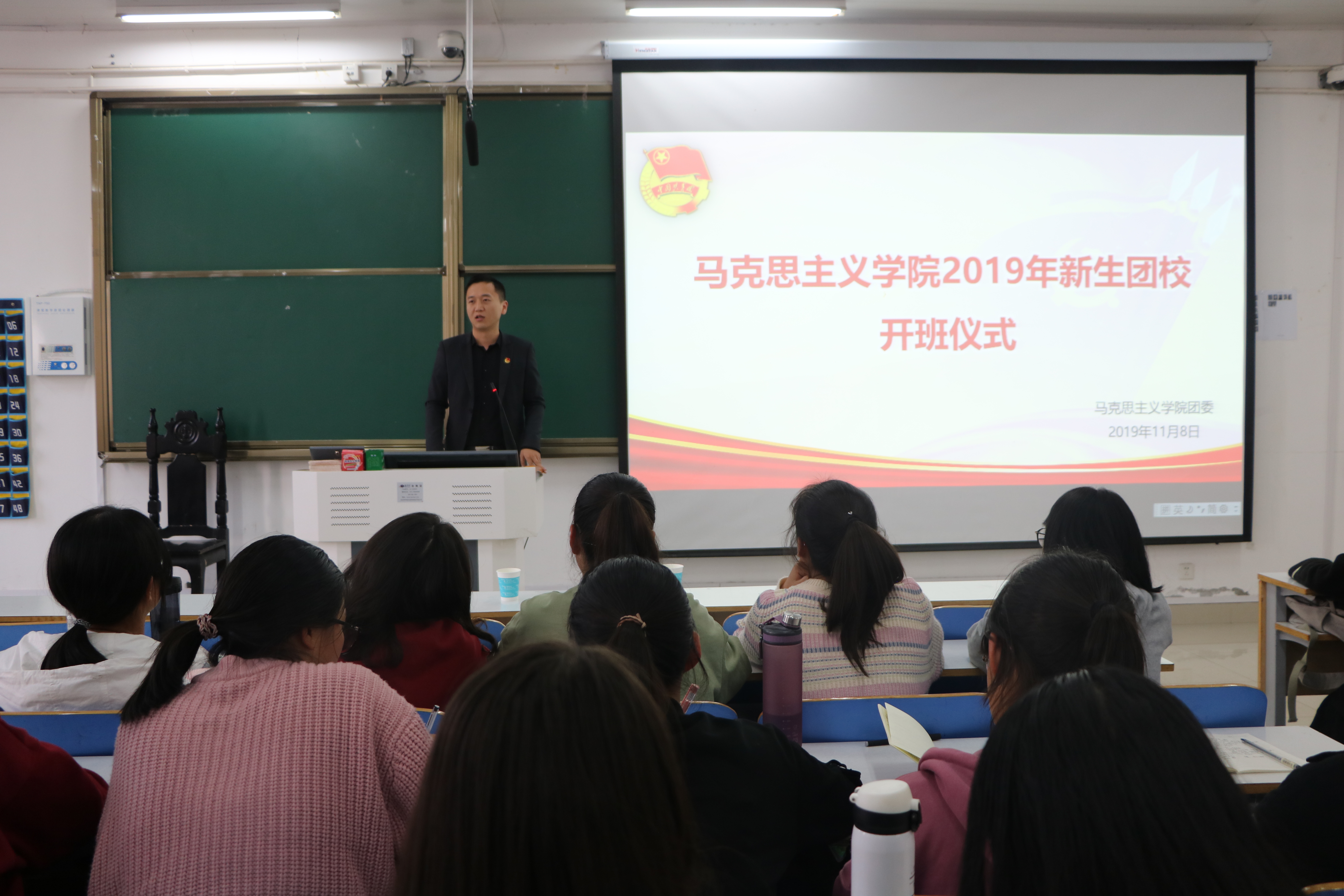 11月8日下午,2026年世界杯官网在社科楼516教室举办2019级新生团校开班仪式。团委书记曹栋,团委老师陶青青,18级部分团员及19级全体新生共同参会。会议由2018级团员李静主持。