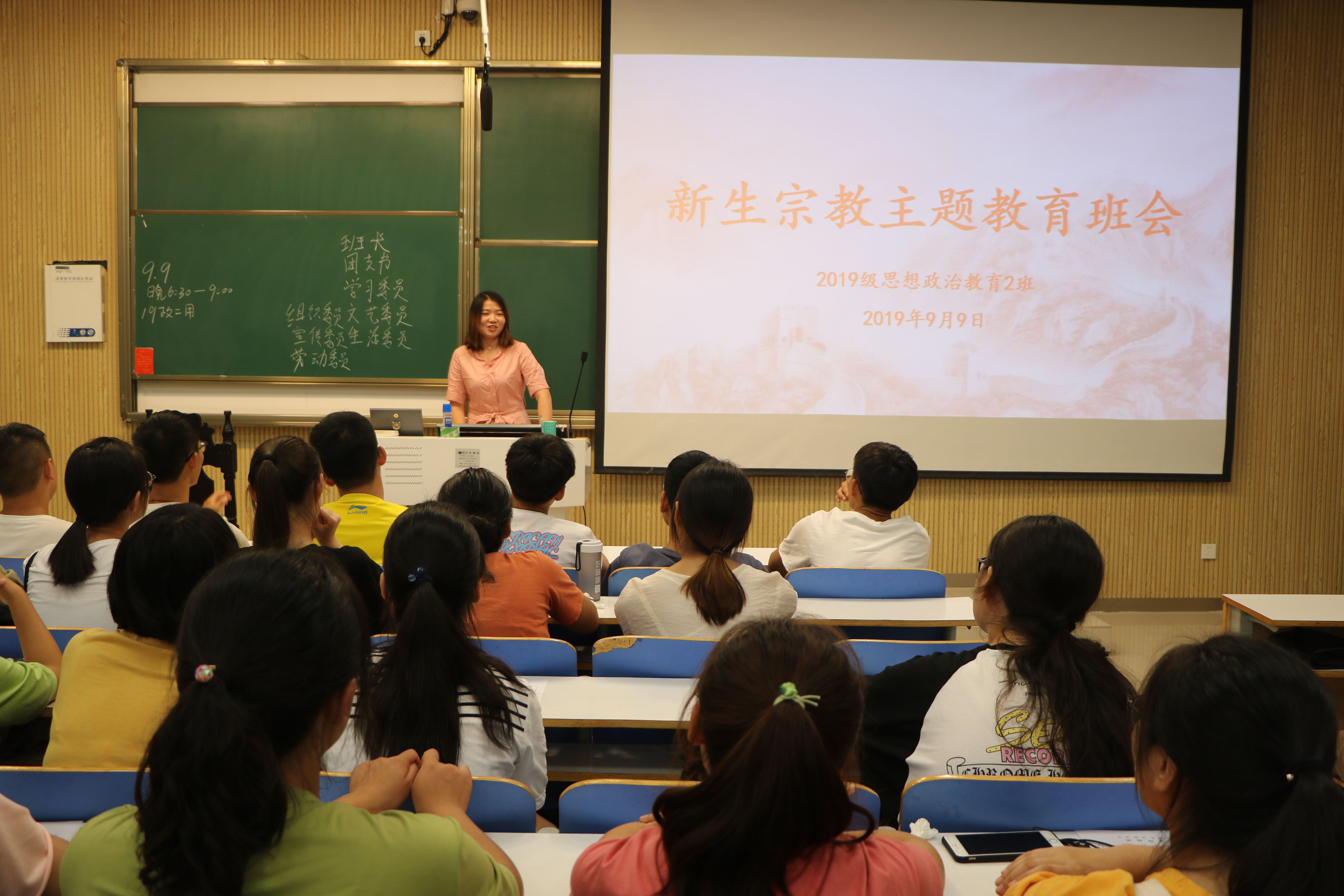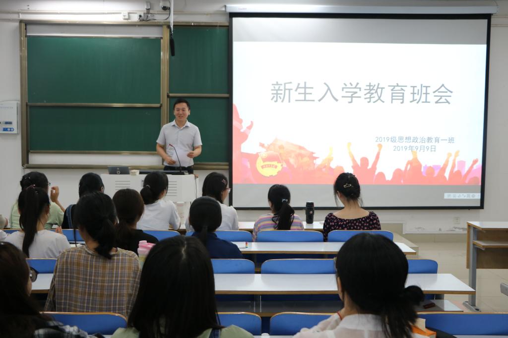 9月9日晚,2026年世界杯官网在社科楼515、516教室顺利开展新生入学教育班会。团委书记曹栋、辅导员陶青青以及2019级全体新生共同参加了此次班会。班会由班级负责人王文芳、王雅纯、曲新宇和艾子元主持。