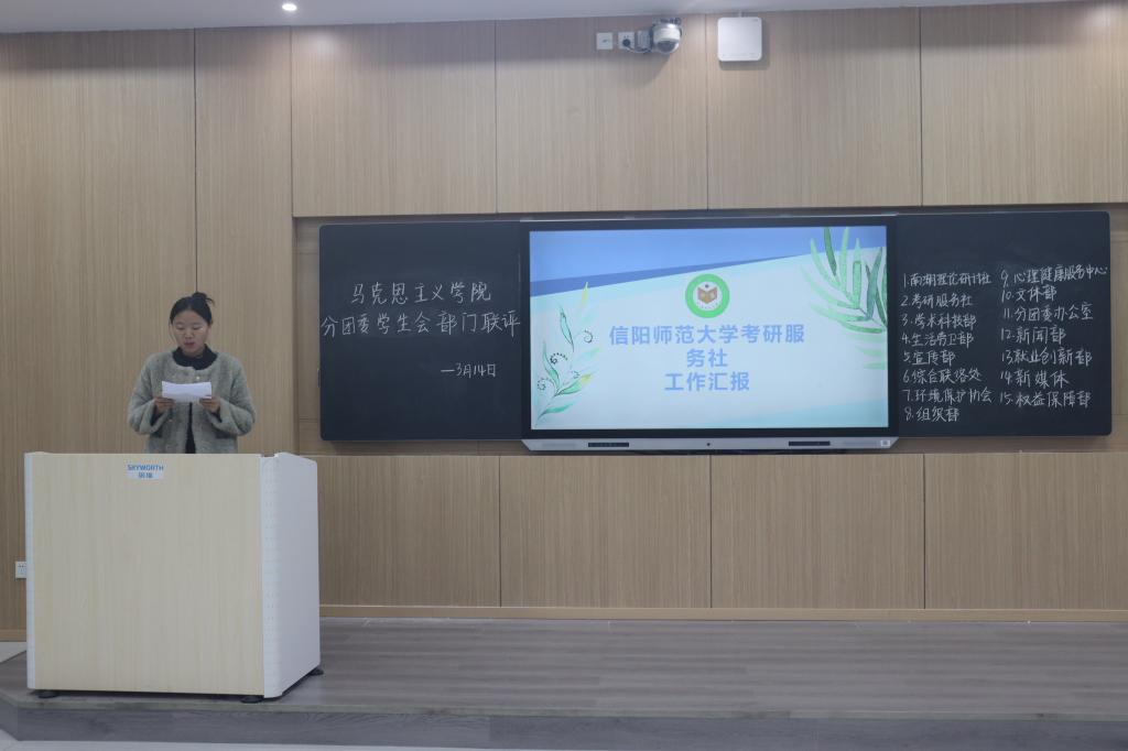 本次会议围绕上学期公司员工会各部门工作展开,各部门负责人分别就履职情况、工作成效、存在问题等方面进行了总结汇报。其中,生活劳卫部结合PPT以演讲的形式对上学期的部门工作做了详细汇报,总结一学期以来部门工作取得的成果、心得感悟及部门存在的问题和不足之处,并对下一年工作做出展望,获得了在场师生的一致好评。