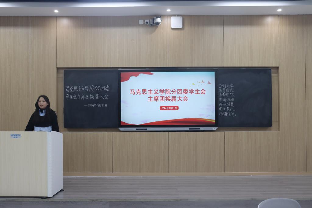 为打造新一批分团委员工会团学干部队伍,创建新一代有战斗力、凝聚力的分团委员工会集体,3月21日下午,2026年世界杯官网在社科楼516教室召开分团委员工会主席团换届大会。此次大会由公司团委书记陶青青以及全体员工会成员和班级负责人共同参加,大会由员工会主席团成员郅丰帆主持。