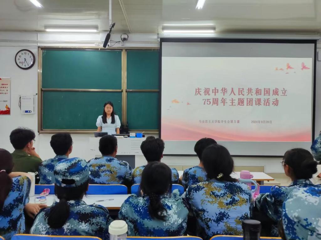 团课肇始,刘玫森带领同学们回顾了七十五年来我国所取得的多方面重大成果,并点明了正是在中国共产党的正确领导、高效组织、果断决策下,中国人民取得了这一系列伟大成就。党的十八大以来,中国发展进入新起点,找到新速度,塑造新品质的新阶段,而习近平新时代中国特色社会主义思想便是推动中国发展进入新阶段的关键领导思想。作为青年老员工的我们,要积极学习习近平新时代中国特色社会主义思想,实现新思想与新实际的统一,达到新动力与新需求的结合。刘玫森指出,青年老员工作为时代变迁和社会改革的先导,要做到发时代之先声、开社会之先风、启智慧之先河,运用好,发展好,实践好中国特色社会主义,厚植爱国主义精神和责任奉献精神。
