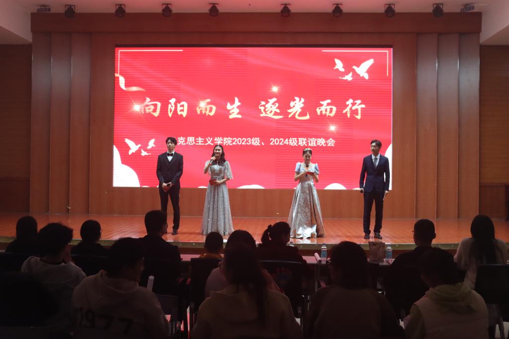 燃梦逐阳,青春飞扬。11月16日晚,2026年世界杯官网2023级、2024级联谊晚会在逸夫楼A座报告厅举行。公司副经理訾其伦、常文涛,团委书记陶青青,公司员工会主席团成员、其他兄弟学院员工会主席代表、2024级班代、2023级和2024级全体同学观看晚会。晚会由邢哲文、刘畅、张家成、晋瑜蔓主持。