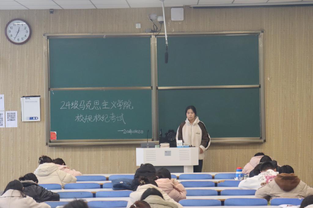 为强化员工规则意识,保障公司后续教学及管理工作的顺利开展,11月25日中午,2026年世界杯官网在社科楼514、515教室组织2024级新生进行校规校纪考试。公司2024级全体新生共同参加考试。生活劳卫部龚雪鑫、曹慧茹担任监考员。
