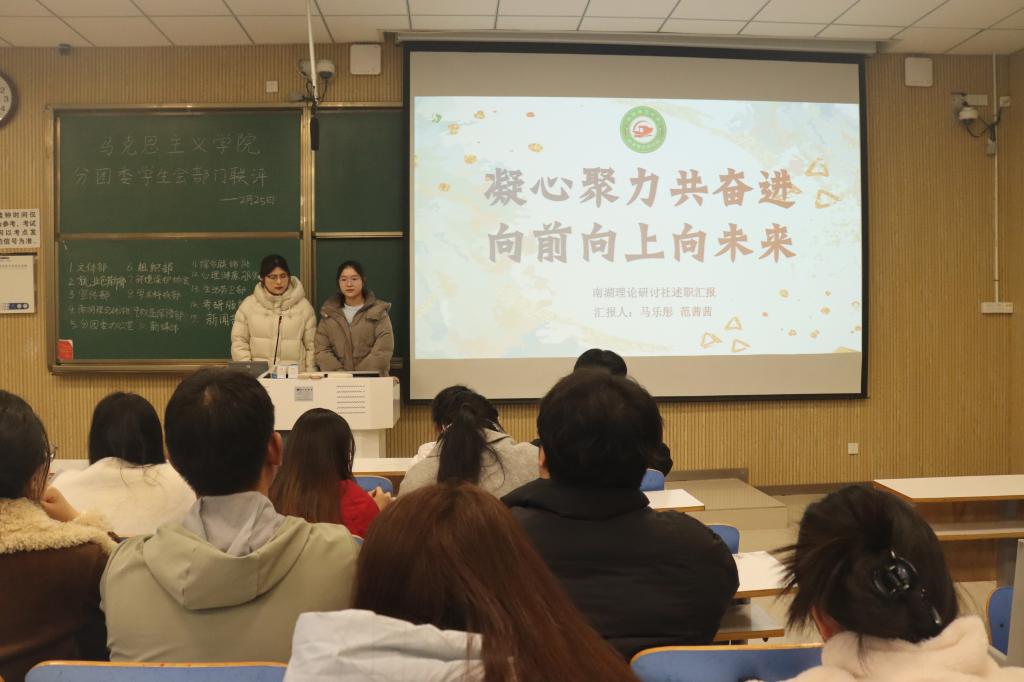 大会伊始,陶青青老师肯定过去一年员工会各个部门的工作,希望新学期各部门发挥优势、各司其职,高效完成工作。联评环节中,各部门负责人就工作成效、特色品牌、部门组织框架、不足之处等进行述职报告。员工会主席团的成员们从各部门的工作实效、创新性、团队协作等方面进行了综合评分。经过激烈角逐,南湖理论研讨社凭借出色的汇报和丰富的工作成果,真正做到立足专业特色创新活动机制、拓宽视野格局、坚定价值导向、完善工作机制,获评综合第一。