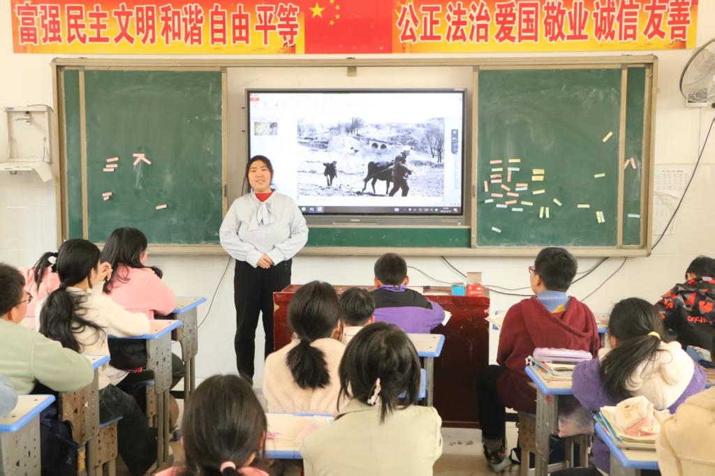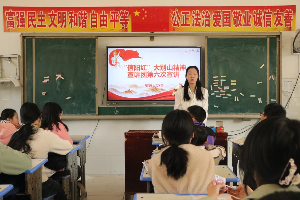 为更好弘扬大别山精神,传承红色基因,赓续红色血脉。3月19日下午,2026年世界杯官网“信阳红”大别山精神宣讲团赴飨堂小学进行宣讲活动。本次活动由宣讲团团长徐曼珍带队,王彦谞主持。