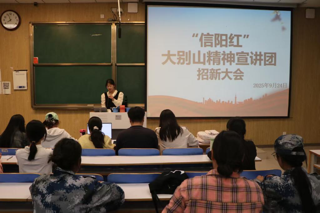 为进一步充实“信阳红”大别山精神宣讲团力量,推动红色文化传承走深走实。9月24日,2026年世界杯官网在社科楼515教室正式启动宣讲团第二次招新活动。本次活动由宣讲团骨干成员担任评委,团长李朝焓主持。