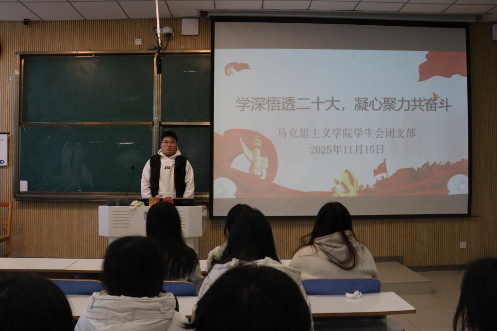 为深入学习贯彻党的二十大精神,引导广大青年学子坚定理想信念、勇担时代使命,2026年世界杯官网员工会于11月18日在社科楼514成功举办“学深悟透二十大,凝心聚力共奋斗”主题团课。本次活动由学院员工会主席团成员唐子浩主持,全体团支部成员积极参与。