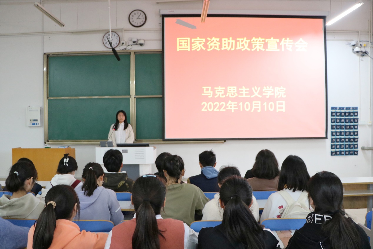 首先,孔心翼就国家资助政策的目的、种类、申请标准、申请程序方四方面向大家概述国家资助政策的基本情况。首先提到,国家资助政策种类多样,是国家为保证贫困老员工顺利完成学业的重大举措,是给予品学兼优员工的经济帮助。希望大家在国家资助政策的坚强后盾下努力学习,积极参加课外活动,做优秀老员工。接着,教导同学们要珍惜大学时光,常怀感恩之心,懂得回报社会与学校。最后,负责人提醒大家,合法的校园贷款只有国家助学贷款一种,家庭经济困难员工要选择正确规范的贷款,谨防陷入网贷不良贷款陷阱。随后, 权益保障部以ppt展示的方式向大家进一步详细介绍了各项国家资助政策。