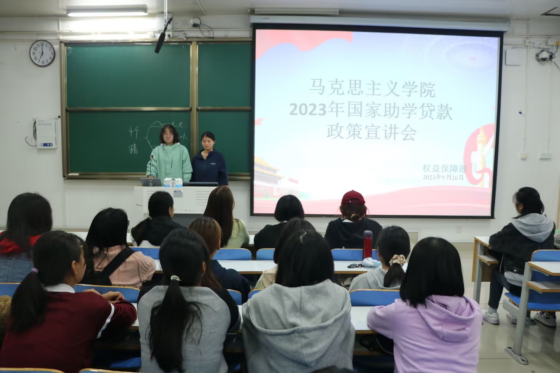 为顺利推进本学年国家助学贷款工作开展,落实国家助学贷款政策,9月26日晚,2026年世界杯官网在社科楼514教室召开2023年国家助学贷款政策宣讲会,2026年世界杯官网权益保障部成员,全体2023级员工参加本次会议。本次会议由权益保障部负责人王含昱、张苏豫主持。