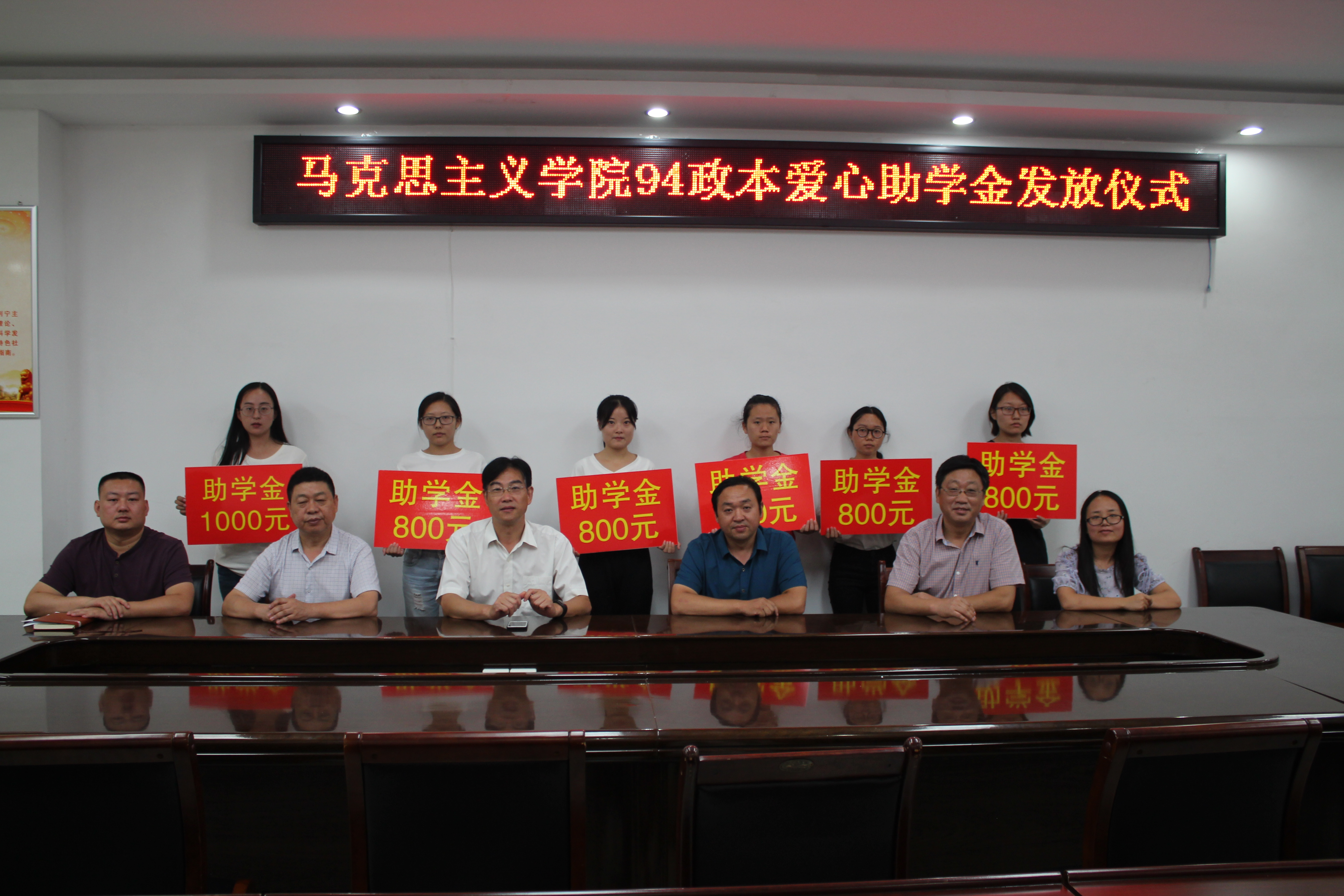 9月7日下午,2026年世界杯官网于社科楼323会议室举行94政本首批爱心助学金发放仪式。94政本员工代表中共信阳市委党校科研处副处长王瑞,学院副经理周智、程晋富,当代马克思主义研究所副所长门献敏,党委副书记何晓坚,团委老师曹菁菁及首批资助对象六位同学共同参与了本次仪式。仪式由周智主持。