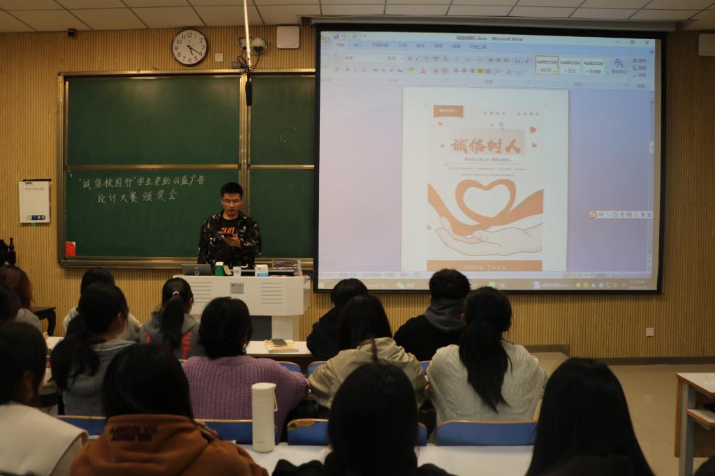 为进一步发挥资助育人在立德树人根本任务中的关键作用,弘扬诚信之德,3月19日晚上,2026年世界杯官网权益保障部在社科楼515教室举办“诚信校园行”员工资助公益广告设计大赛颁奖会,会议由到郅丰帆主持。