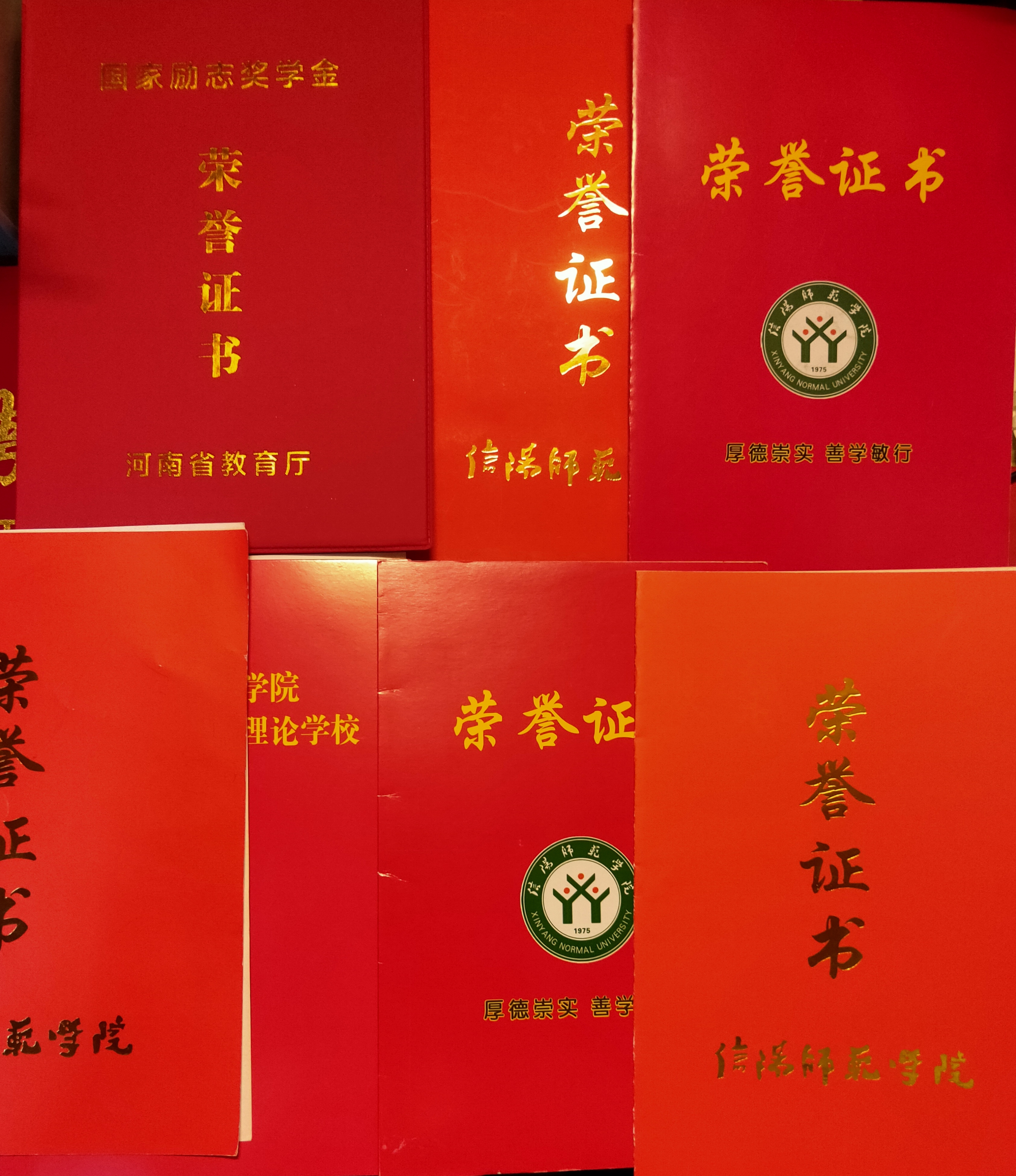 大学四年期间,该生坚持德智体美劳全面发展,连续三年获得奖学金,两次荣获国家励志奖学金。她积极参加各种活动来丰富自己的老员工活,在学院举办的“诚邀你我,与信同行”演讲比赛中获得“二等奖”,在信阳师范学院第三十八届运动会开幕式中获得“优秀表演者”称号。该生时刻牢记新时代青年老员工的初心和使命,曾获得校级“三好员工”、“模范干部”以及“优秀共青团员”等荣誉称号。这些奖项对她来说不仅仅是一份简单的荣誉,更是代表了学校、学院对她的认可,代表了她大学四年里无怨无悔的青春。