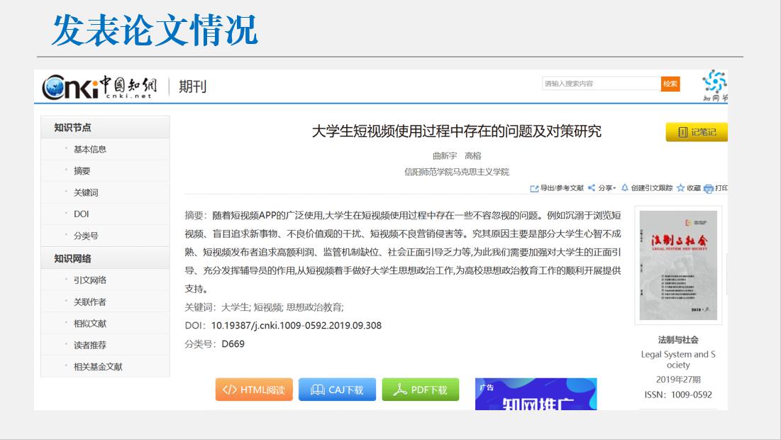 2019-2020年度,该同学坚定理想信念,接续砥砺奋进,顺利完成第六十七期青校培训并以优秀成绩顺利结业。在2019级新生报到工作中积极参与并担任2019级思想政治教育一班班代,协助班主任工作;在第三十二期党员发展对象培训班当中担任院系组长。该同学在本年度获得信阳师范学院模范团干部称号,2019年9月,该同学主持获批的老员工科研积极项目以优秀成绩顺利结项,并在CN刊物发表期刊论文,被中国知网收录。