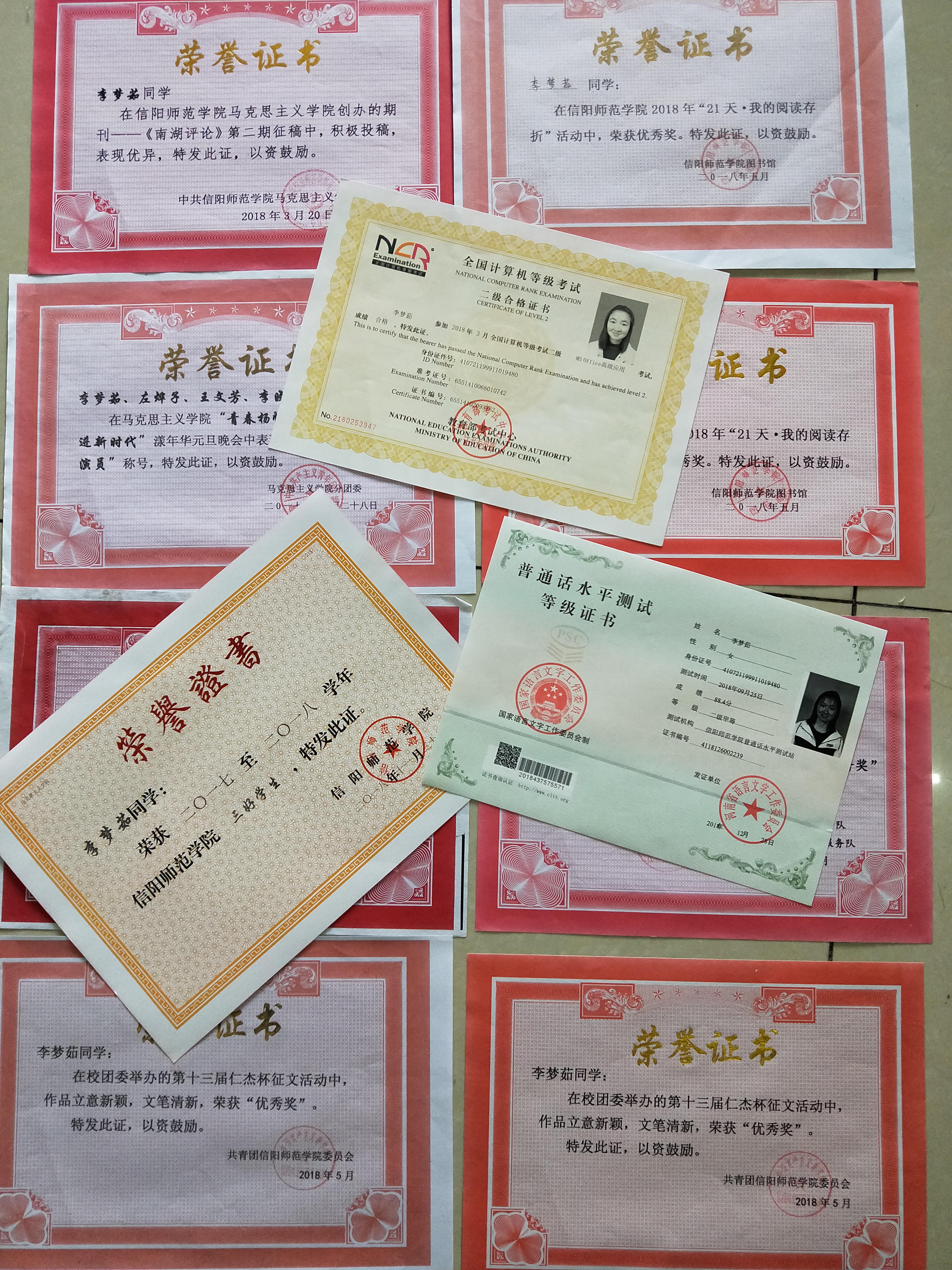 该生作为一名思想政治教育专业员工,坚决拥护党的指导思想,关注时事,不断提高思想觉悟,努力学习专业知识,及时革新学习方法,学习勤奋刻苦,成绩优异,先后获得国家奖学金和校级一等奖学金。该生积极参加科研活动和社会实践活动,参与的科研基金项目顺利立项,社会实践调研报告在学院评比中荣获二等奖,并在《南湖评论》和《知行·南湖》中发表多篇文章。作为宣讲交流团的成员深入信阳市各个地区宣讲习近平新时代中国特色社会主义思想,同时也在“讲好河南故事,演绎中原风采”英语演讲比赛中荣获三等奖,多次荣获信阳师范学院三好员工。