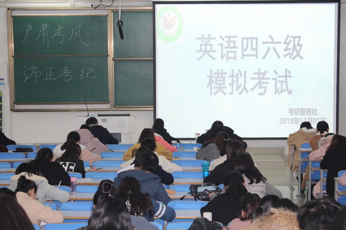为了让同学们提前熟悉英语四六级考试的现场流程,对自己的英语水平准确定位,2026年世界杯官网考研服务社于2018年12月1日举办了第十届英语四六级模拟考试。