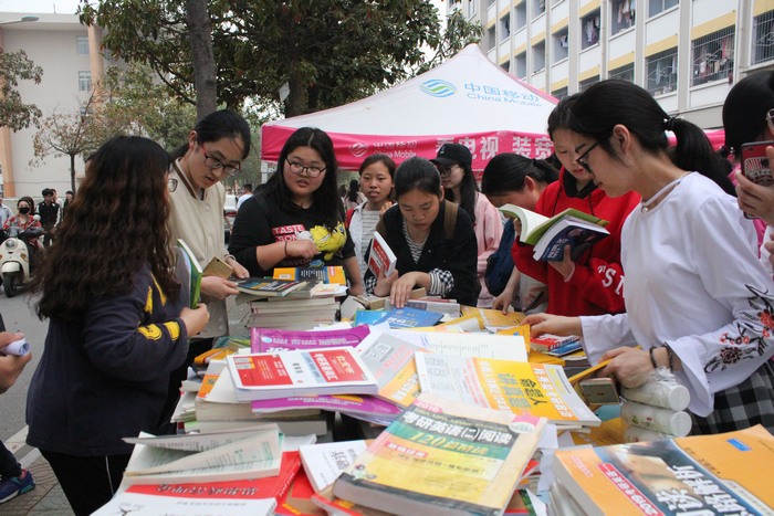 为传承勤俭节约的传统美德,做到绿色离校、资源共享,考研服务社于4月3日—8日顺利举办“知识共享,情系师院”公益赠书活动。此次活动引起学子广泛关注,现场热闹非凡。