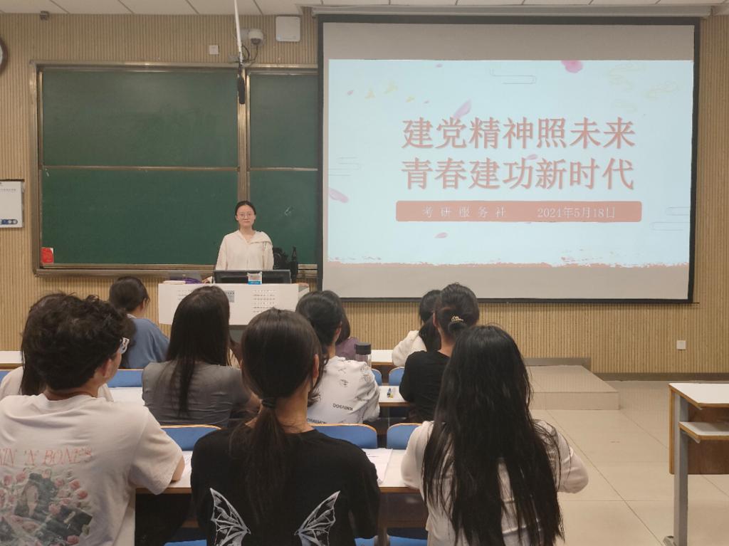 为深入学习贯彻党的光辉历史和伟大精神,引导社团成员了解其思想内涵并积极承担责任,坚定理想信念、砥砺前行,5月18日晚上,考研服务社于社科楼515召开了“建党精神照未来,青春建工新时代”主题团课活动。本次团课由冀艺婷主持,考研服务社全体社员参加。