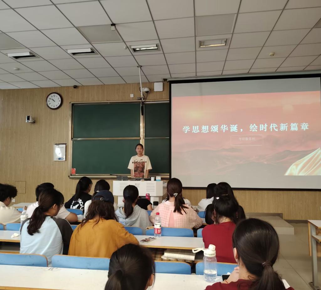 为深入学习和传承中国特色社会主义思想,激发员工的爱国热情和社会责任感,实现中华民族伟大复兴的中国梦贡献青春力量。9月29日,考研服务社于社科楼515开展了“学思想颂华诞,绘时代新篇章”主题团日活动。本次活动由社长丁文倩主持,考研服务社全体社员参加。