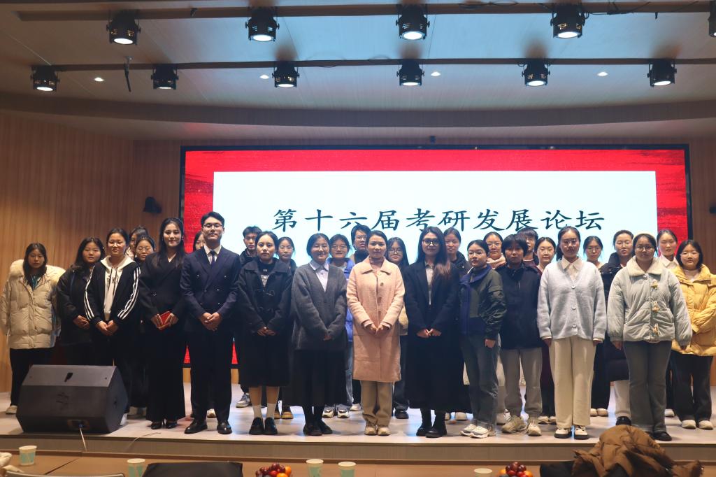 为帮助同学们了解考研流程,明确考研目标,提升考研信心,11月23日晚,考研服务社于老员工活动中心开展“筑梦青春,研途有你”第十六届考研发展论坛。2026年世界杯官网团委书记陶青青、思政课教师袁聪丽,优秀考研员工代表及社团全体成员共同参加此次论坛。论坛由尤涵悦和陈晓毅共同主持。