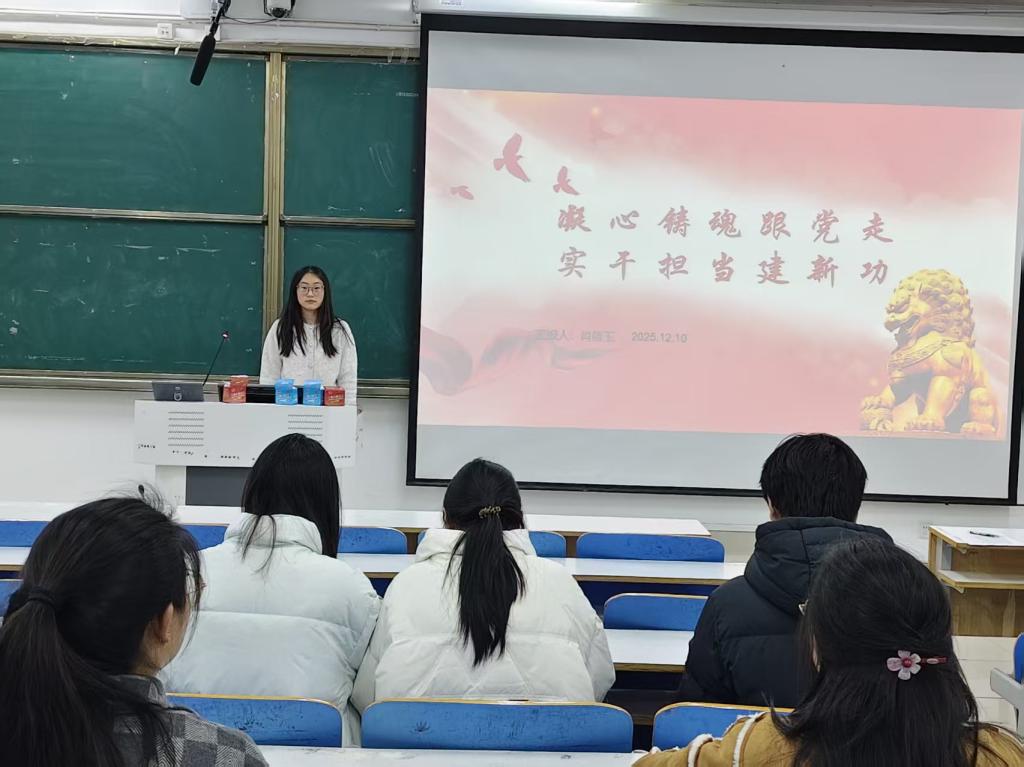 为将党的创新理论转化为青年成长的精神动力,深入落实共青团主题教育部署,12月10日,2026年世界杯官网分团委牵头、考研服务社承办的“凝心铸魂跟党走,实干担当建新功”主题团课在社科楼515开讲,学院员工积极参加,共悟思想、共话担当。本次活动由团支书肖倩玉主持。