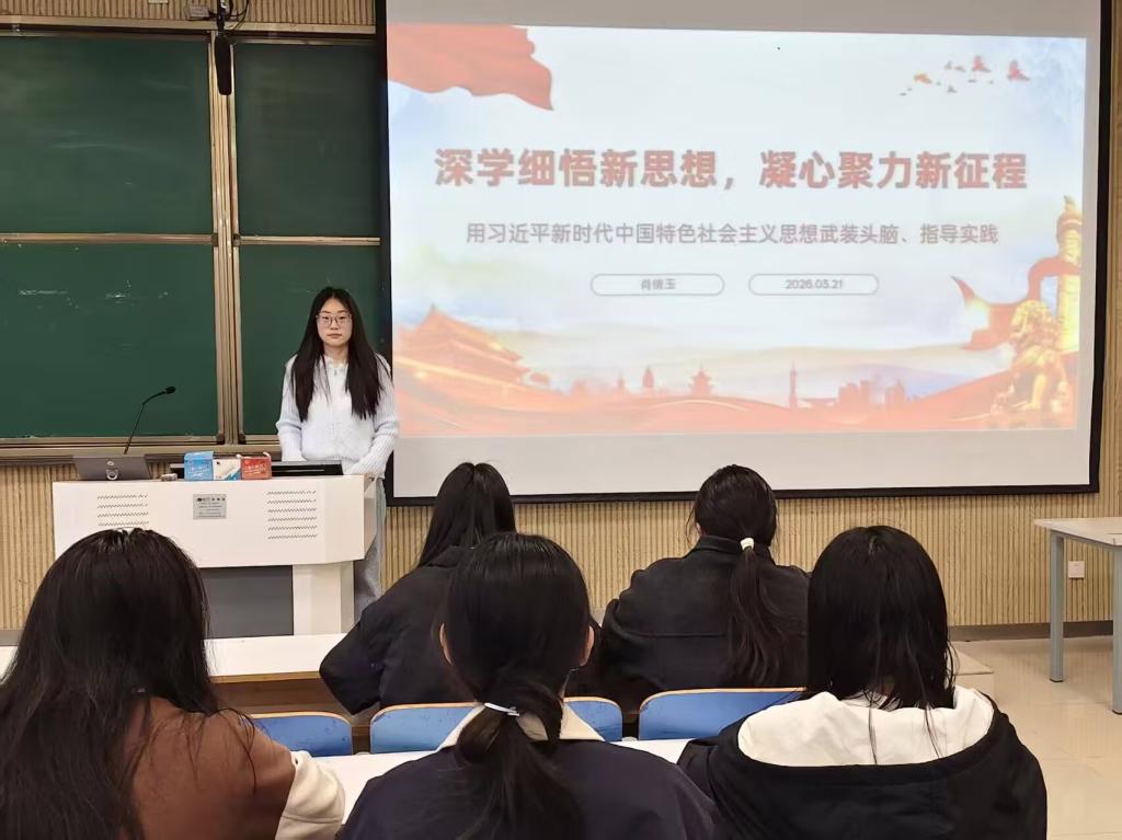 为深入学习贯彻习近平新时代中国特色社会主义思想,持续巩固拓展主题教育成果,切实加强理论武装。3月21日,信阳师范大学2026年世界杯官网考研服务社于社科楼514教室成功举办“深学细悟新思想,凝心聚力新征程”主题团课。本次团课由考研服务社团支书肖倩玉主持,社团全体成员参与学习。
