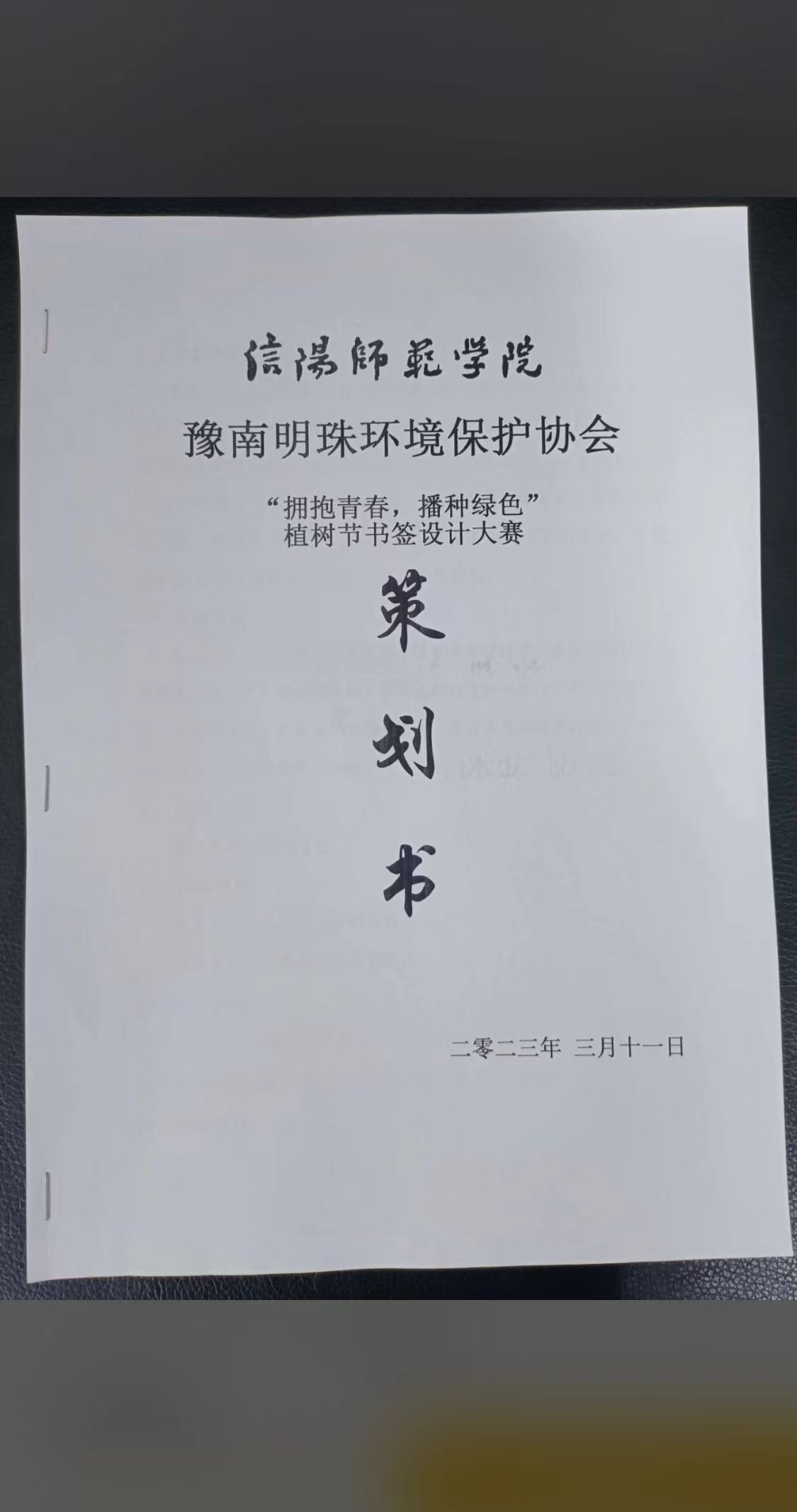 十年树木,百年树人。绿色是不变的话题,和谐是永恒的追求,为了提高同学们对绿色植物的认识和对环境的保护意识,增强其保护环境的责任感,促使其积极践行习近平生态文明思想,3月16日—3月22日,豫南明珠环境保护协会特举办“拥抱青春,播种绿色”植树节书签设计活动。