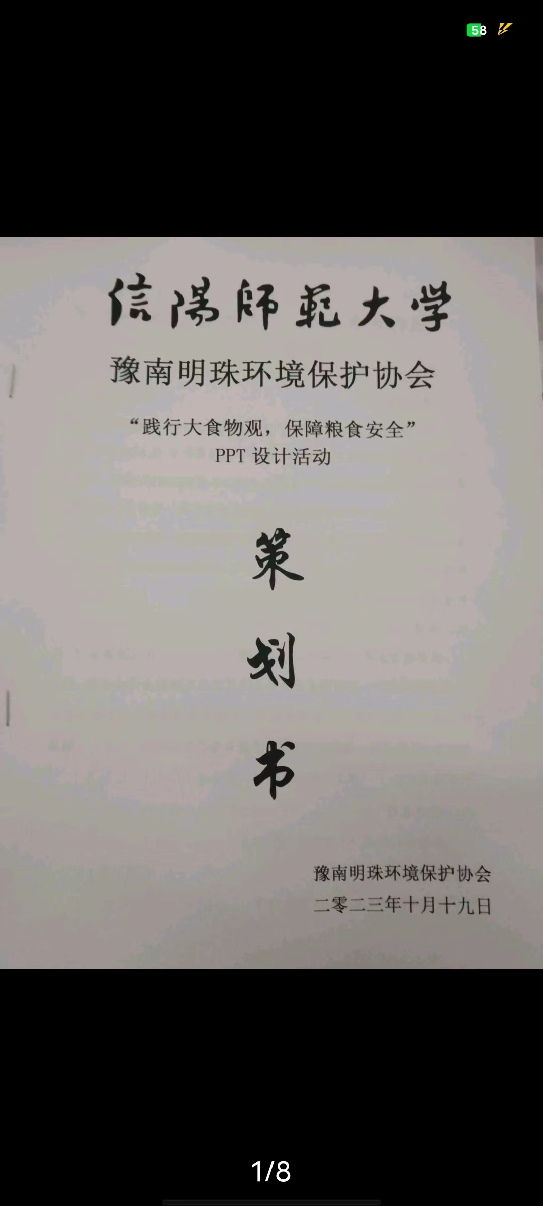 粮食安全是“国之大者”。习近平总书记指出:“保障粮食和重要农产品稳定安全供给始终是建设农业强国的头等大事。”为进一步宣传粮食安全问题,让每位员工充分了解保障国家粮食安全的重要性,10月27日至30日,豫南明珠环境保护协会举办“践行大食物观,保障粮食安全”PPT设计活动。