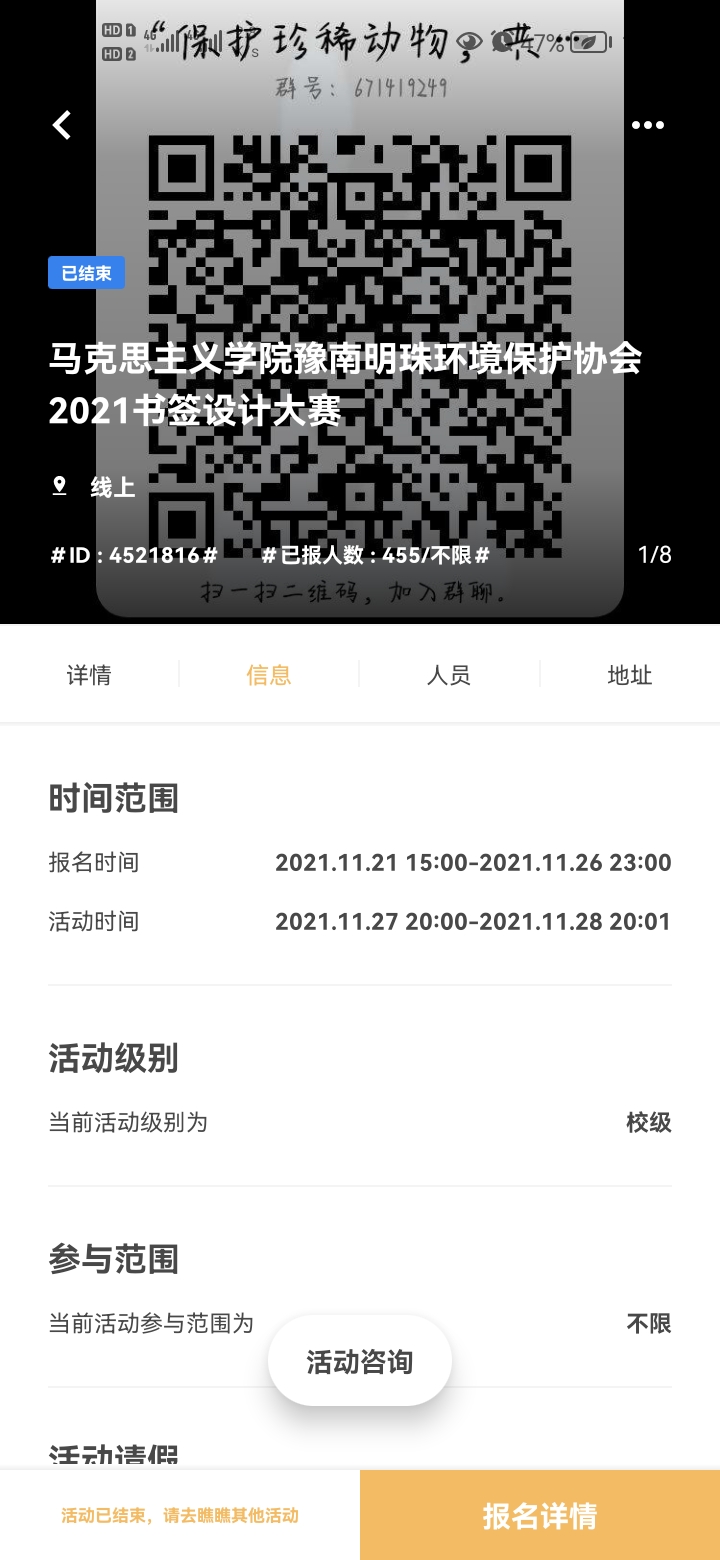 为贯彻落实习近平生态文明思想,增进员工对珍稀动物的了解,11月22日至11月28日,豫南明珠环境保护协会“保护珍稀动物,共筑和谐家园”书签设计大赛于线上举行。