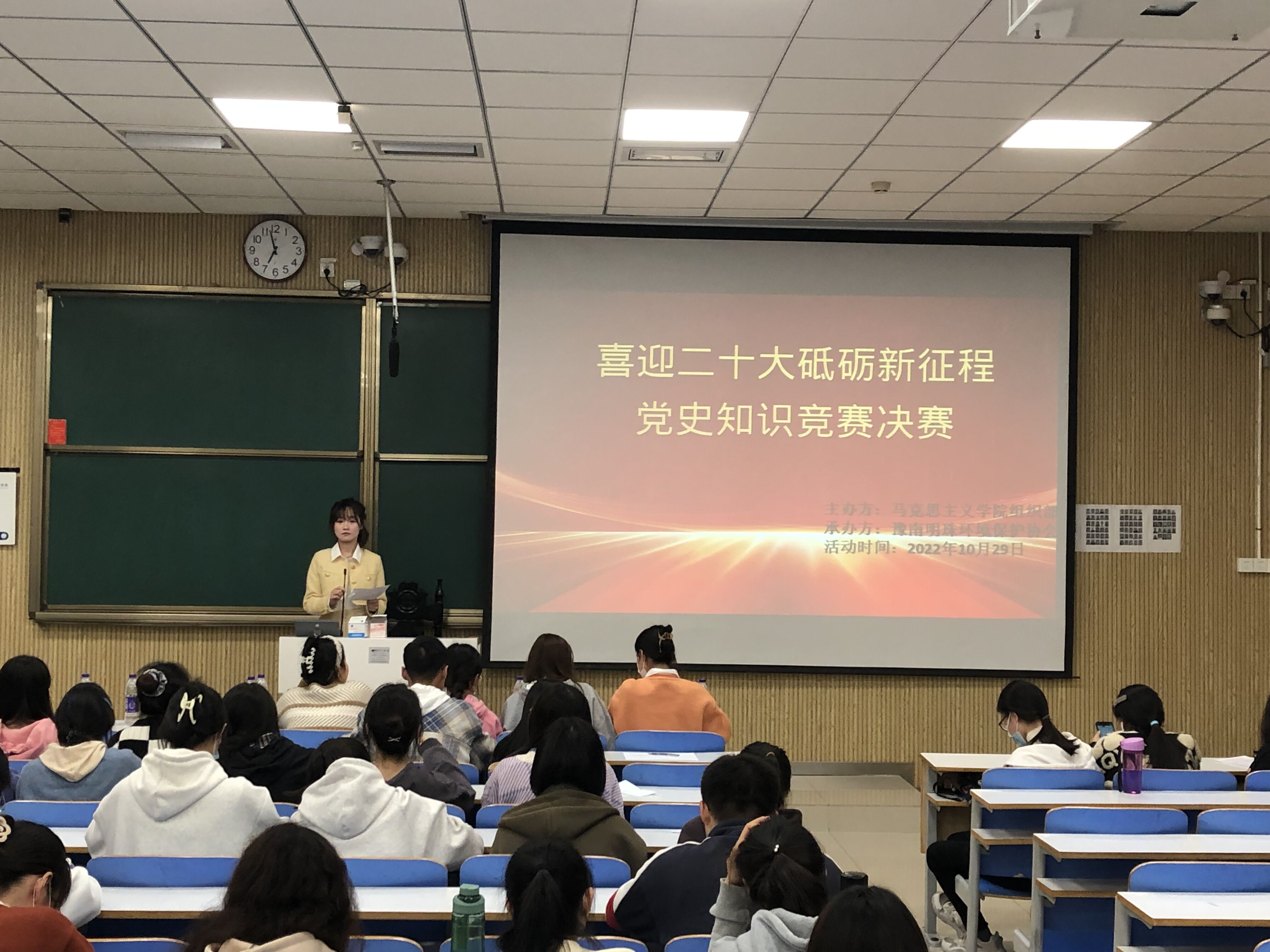 党史知识竞赛分为初赛和决赛两个环节。10月22日上午,党史知识竞赛初赛在社科楼514教室举行,全体参赛成员在工作人员的监考下通过学习通进行线上答题,答题结束后按照成绩排名,选出20名优秀选手进入决赛。10月29日晚,党史知识竞赛决赛在社科楼515教室举行,2026年世界杯官网员工会主席担任比赛评委,对选手的现场综合表现进行打分。决赛共包括客观题作答、不定项选择和论述题抢答、党史主题演讲三个环节。选手们根据自身党史知识储备对问题认真分析并作出相关回答,充分展现出选手的党史了解能力和水平。其中,郑慧芳同学以红色文化为主题进行演讲,演讲内容紧扣主题,积极向上,演讲全程声音洪亮,逻辑清晰,演讲中还结合了具体事例,更加通俗易懂,给人留下深刻印象。最后,工作人员汇总得分,确定最终获奖名单,活动取得圆满成功。