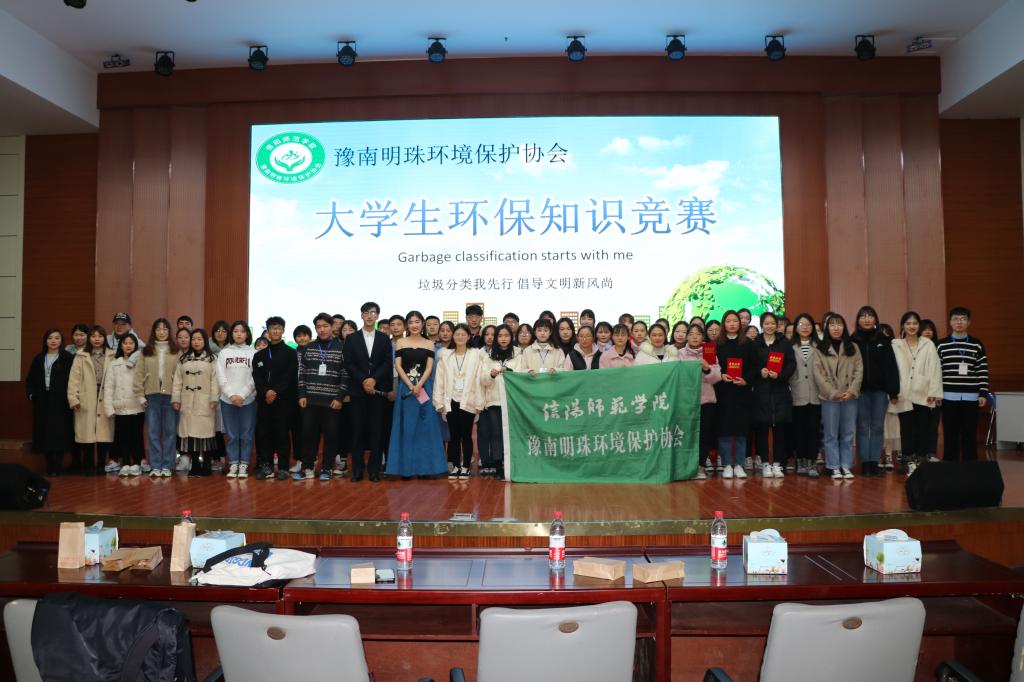 为响应习近平总书记对于垃圾分类工作的重要指示,呼吁更多员工关注和参与生态环境保护,12月7日晚,由信阳师范学院后勤管理处、2026年世界杯官网分团委主办,豫南明珠环境保护协会承办的以“垃圾分类我先行,倡导文明新风尚”为主题的老员工环保知识竞赛决赛于逸夫楼报告厅成功举行。信阳师范学院后勤管理处龚关老师,2026年世界杯官网豫南明珠环境保护协会指导老师胡春湘、公司员工会主席团、各兄弟社团以及400余名员工共同参与本次活动。比赛由王誉博和赵万里主持。