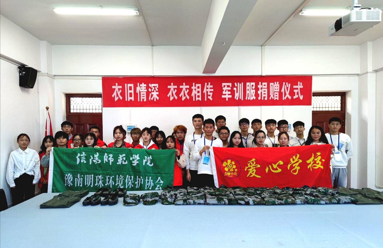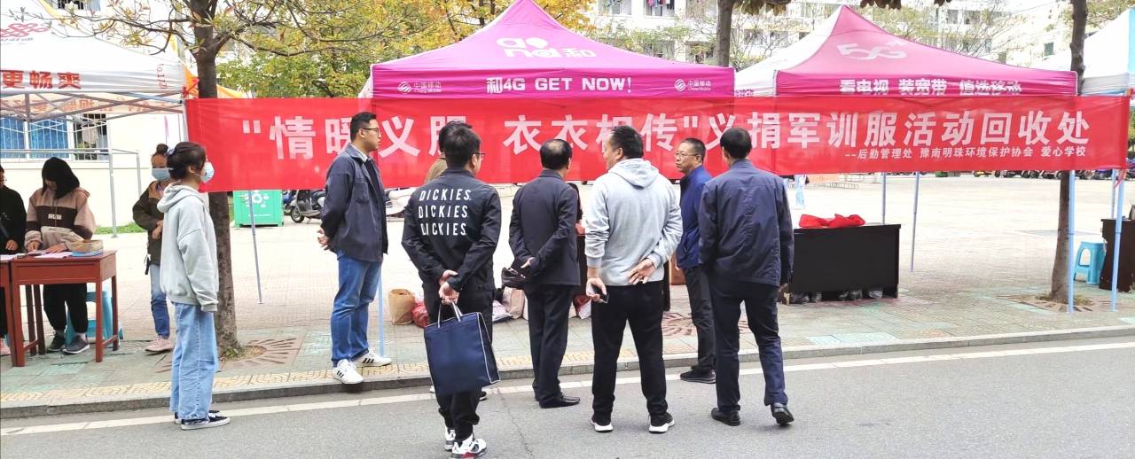 为提高老员工社会责任感与回馈社会意识,促进资源合理利用,10月28日至10月31日,由信阳师范学院后勤管理处主办,豫南明珠环境保护协会和爱心学校承办的“情暖义服,衣衣相传”义捐军训服活动在八餐小广场顺利举行。