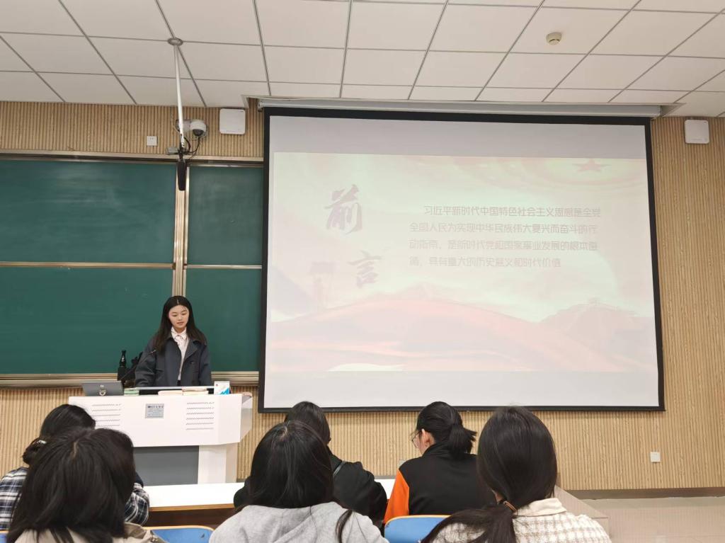本次团课由团支书马倩主持。团课伊始,马倩先向社团成员们介绍了本次团课的主题,简要概括了习近平新时代中国特色社会主义思想的主要内容。接着,马倩以视频和幻灯片相结合的形式深入剖析了习近平新时代中国特色社会主义思想的内在本质,加深了社团成员们对这一思想的理解。最后,马倩强调了学习习近平新时代中国特色社会主义思想对青年一代的重要性,号召社团成员深入学习贯彻习近平新时代中国特色社会主义思想,以正确的理论指导行动,投身于中华民族伟大复兴。