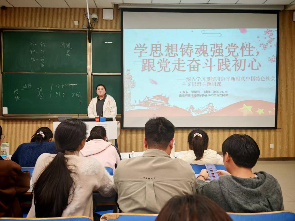 为深入学习贯彻习近平新时代中国特色社会主义思想,增强社团成员的思想政治觉悟,豫南明珠环境保护协会于10月15日晚在社科楼515举办“学思想铸魂强党性,跟党走奋斗践初心——深入学习贯彻习近平新时代中国特色社会主义思想”主题团课。