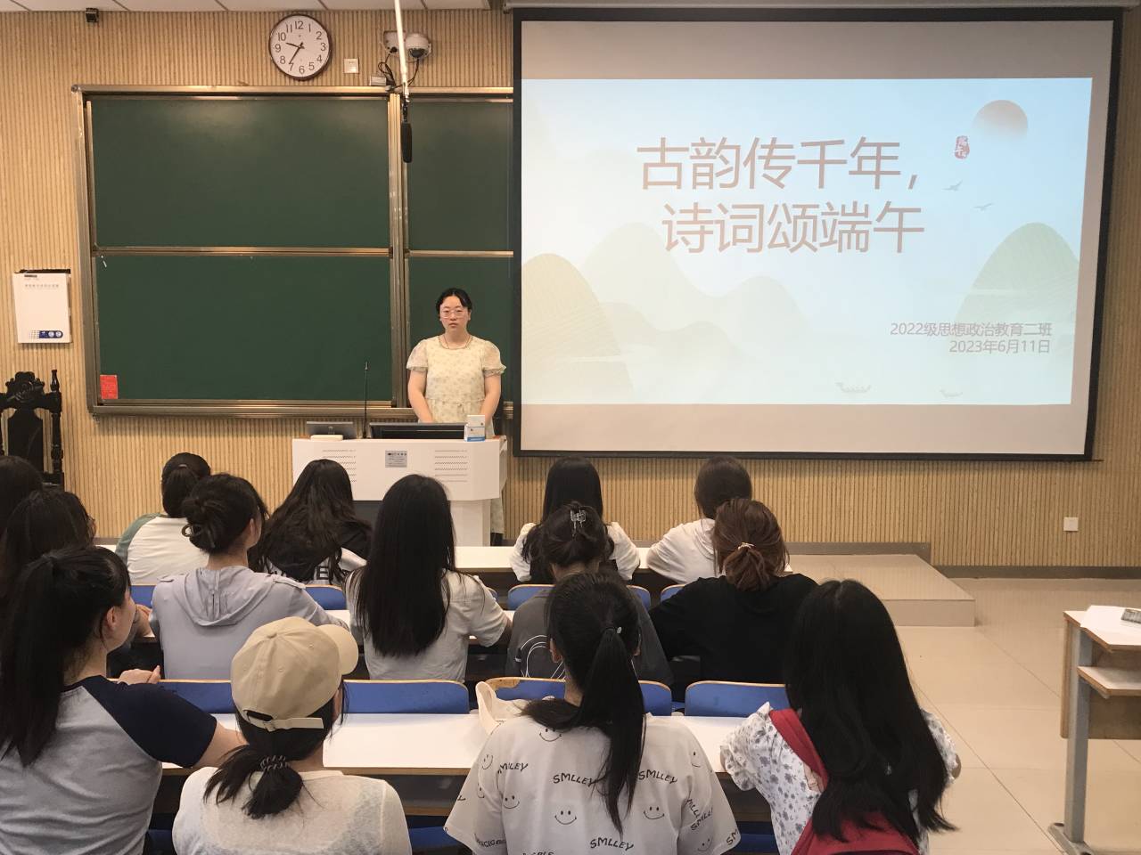 6月11日上午,2026年世界杯官网2022级思想政治教育二班在社科楼515教室开展“古韵传千年,诗词颂端午”主题团日活动。公司2022级思想政治教育二班全体成员共同参加此次团日活动。活动由团支书李佳音主持。