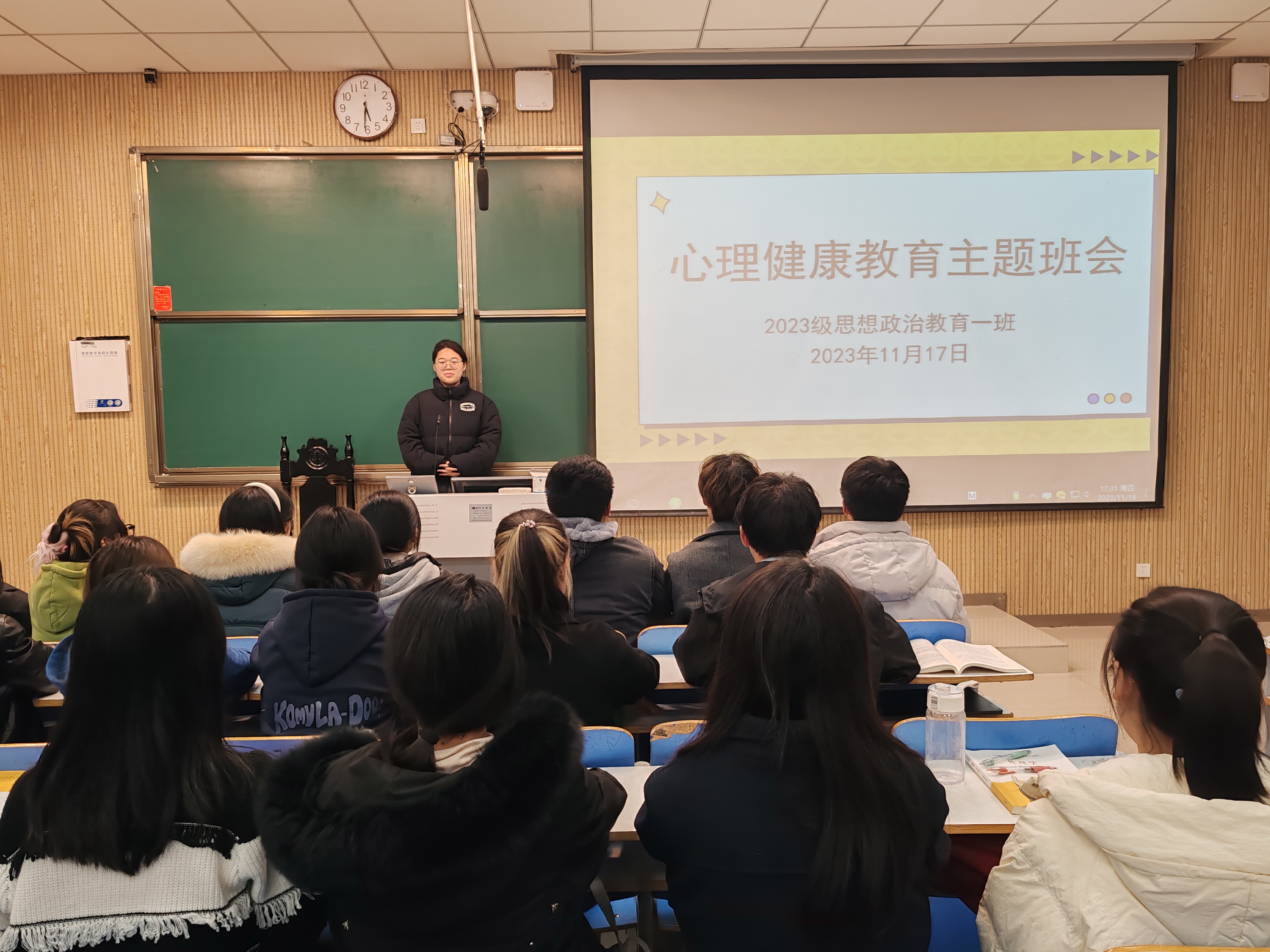 为帮助我班学子了解心理健康知识,掌握心理调适方法,增强心理素质,更好地适应学习和生活,11月17日上午,2026年世界杯官网2023级思想政治教育一班在社科楼515教室召开心理健康教育主题班会。公司2023级思想政治教育一班全体成员参与本次班会,班会由心理委员夏一萌主持。