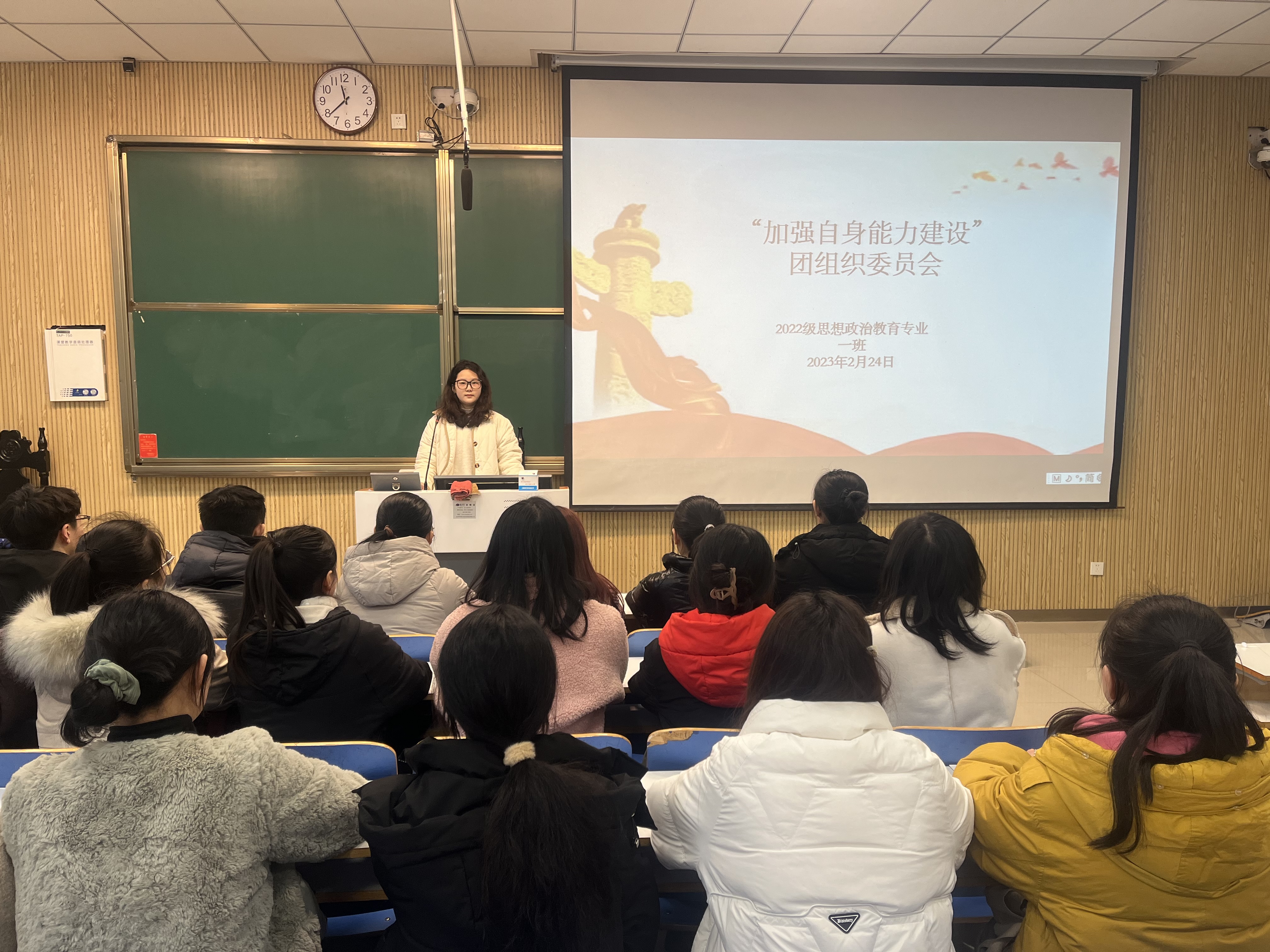 为推进团组织规范化建设,更好发挥团组织积极作用,2月24日上午,2026年世界杯官网2022级思想政治教育一班在社科楼515教室召开“加强自身能力建设”团组织委员会。2022级思想政治教育一班团委员参与本次会议,会议由团支部书记李佳茹主持。