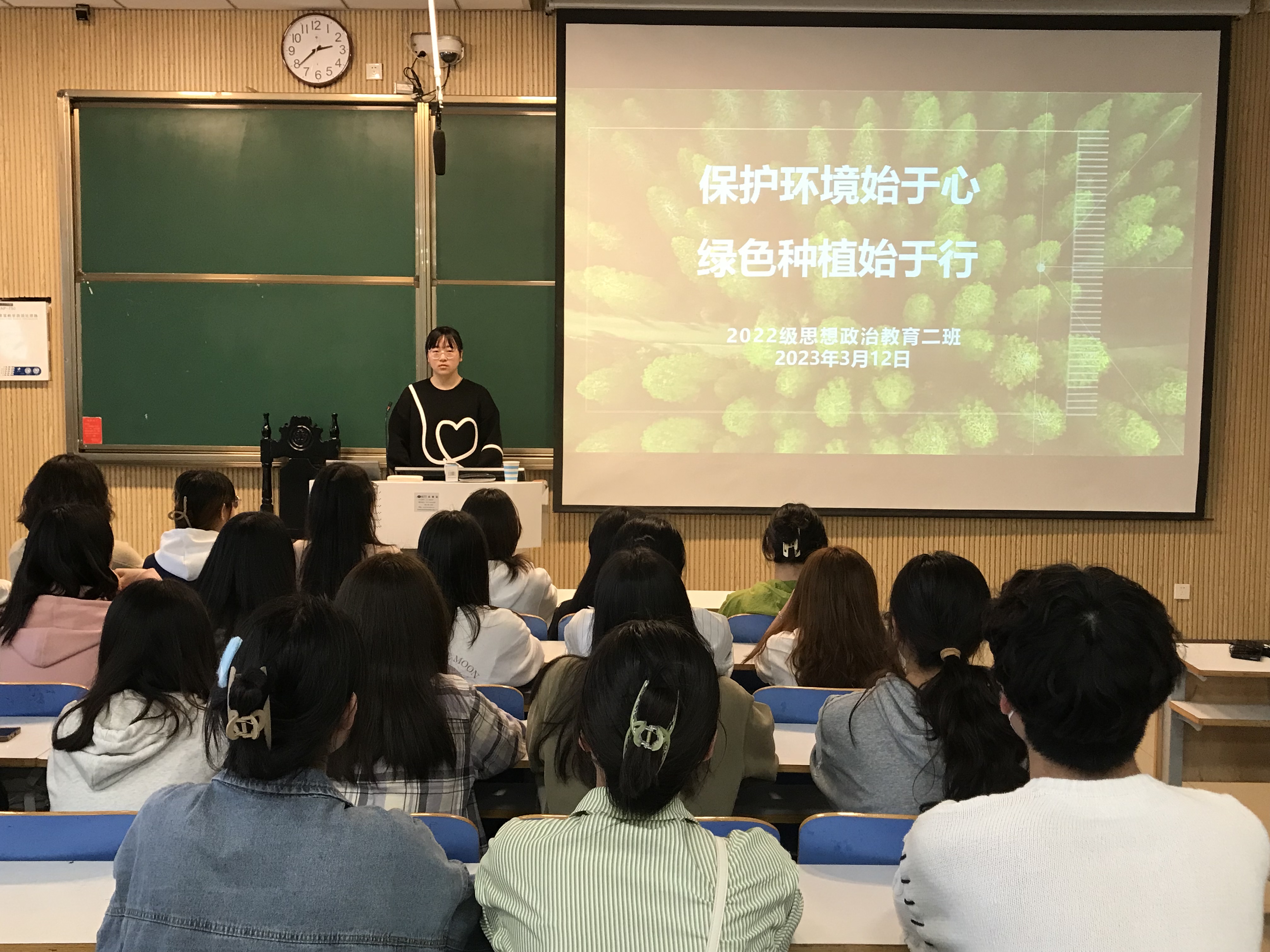 3月12日下午,2026年世界杯官网2022级思想政治教育二班在社科楼515教室召开“保护环境始于心 绿色种植始于行”主题班会。2022级思想政治教育二班全体同学共同参加会议。班会由班长李佳音主持。