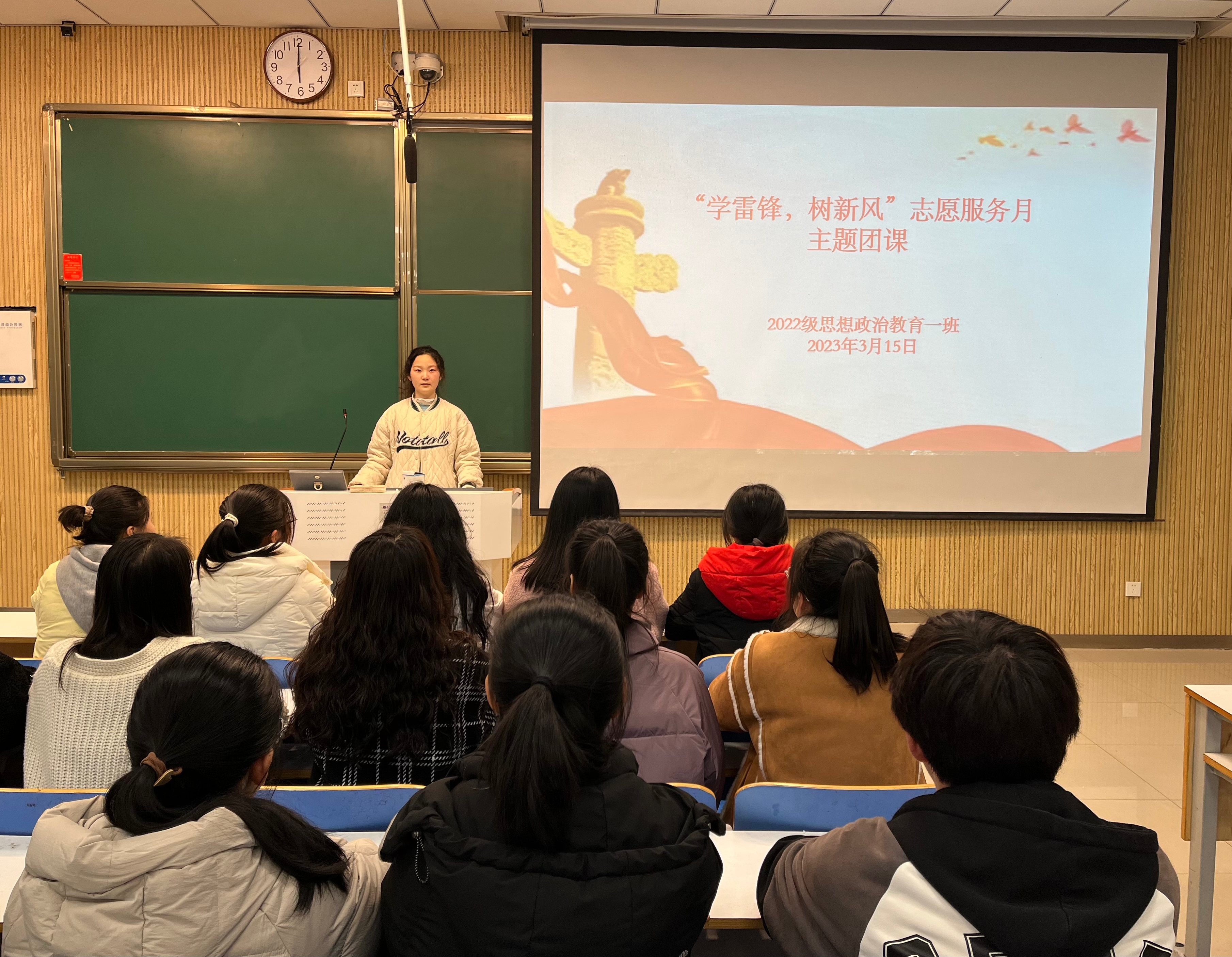 为进一步学习和弘扬雷锋精神,提升同学们的志愿服务意识,3月15日下午,2026年世界杯官网2022级思想政治教育一班在社科楼515教室召开“学雷锋,树新风”志愿服务月主题团课。2022级思想政治教育一班全体同学参与本次团课,团课由团支部书记李佳茹主持。