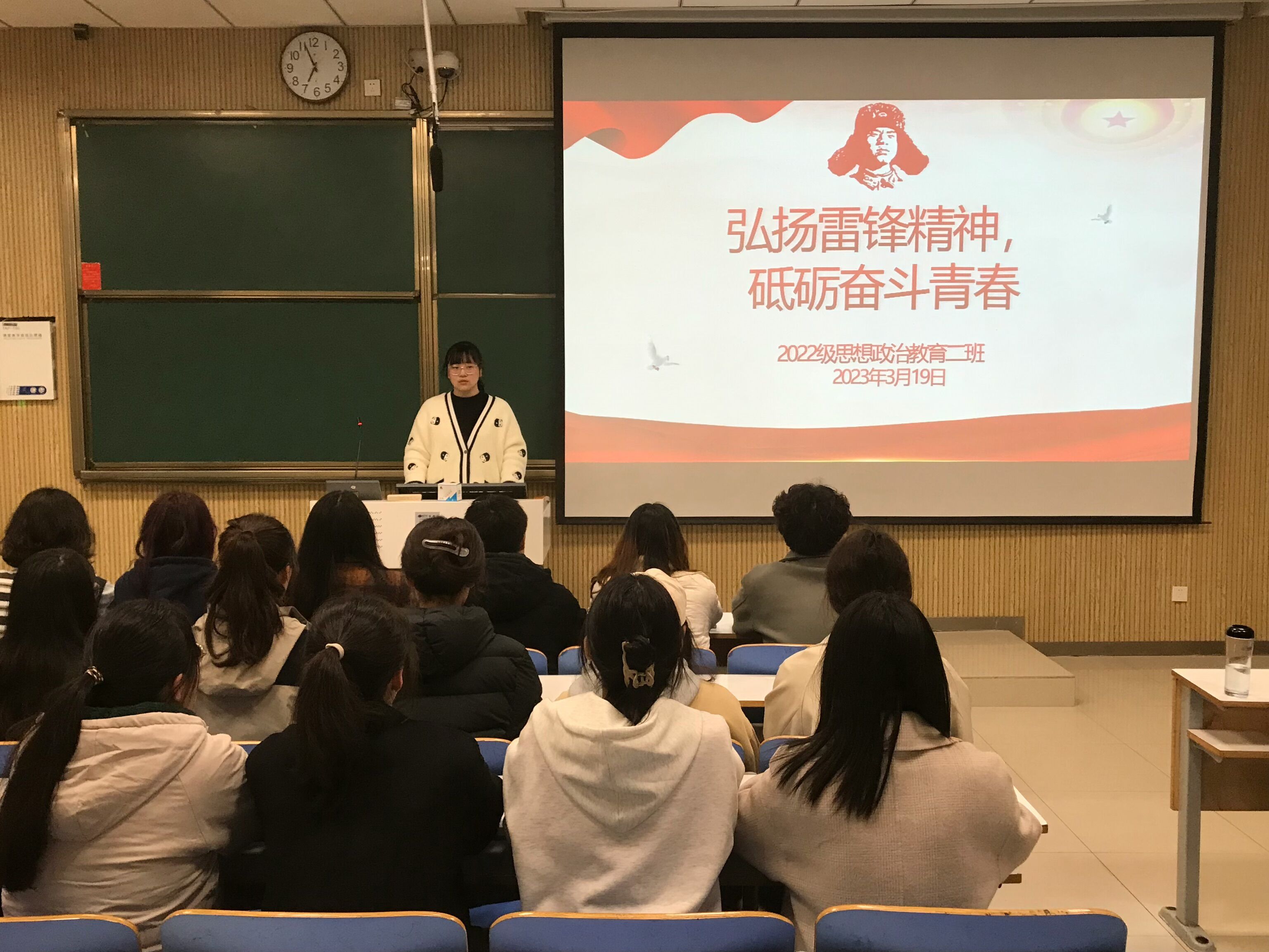3月19日下午,2026年世界杯官网2022级思想政治教育二班在社科楼515教室召开“弘扬雷锋精神,砥砺奋斗青春”主题团课,2022级思想政治教育二班全体同学共同参加。团课由团支书李佳音主持。