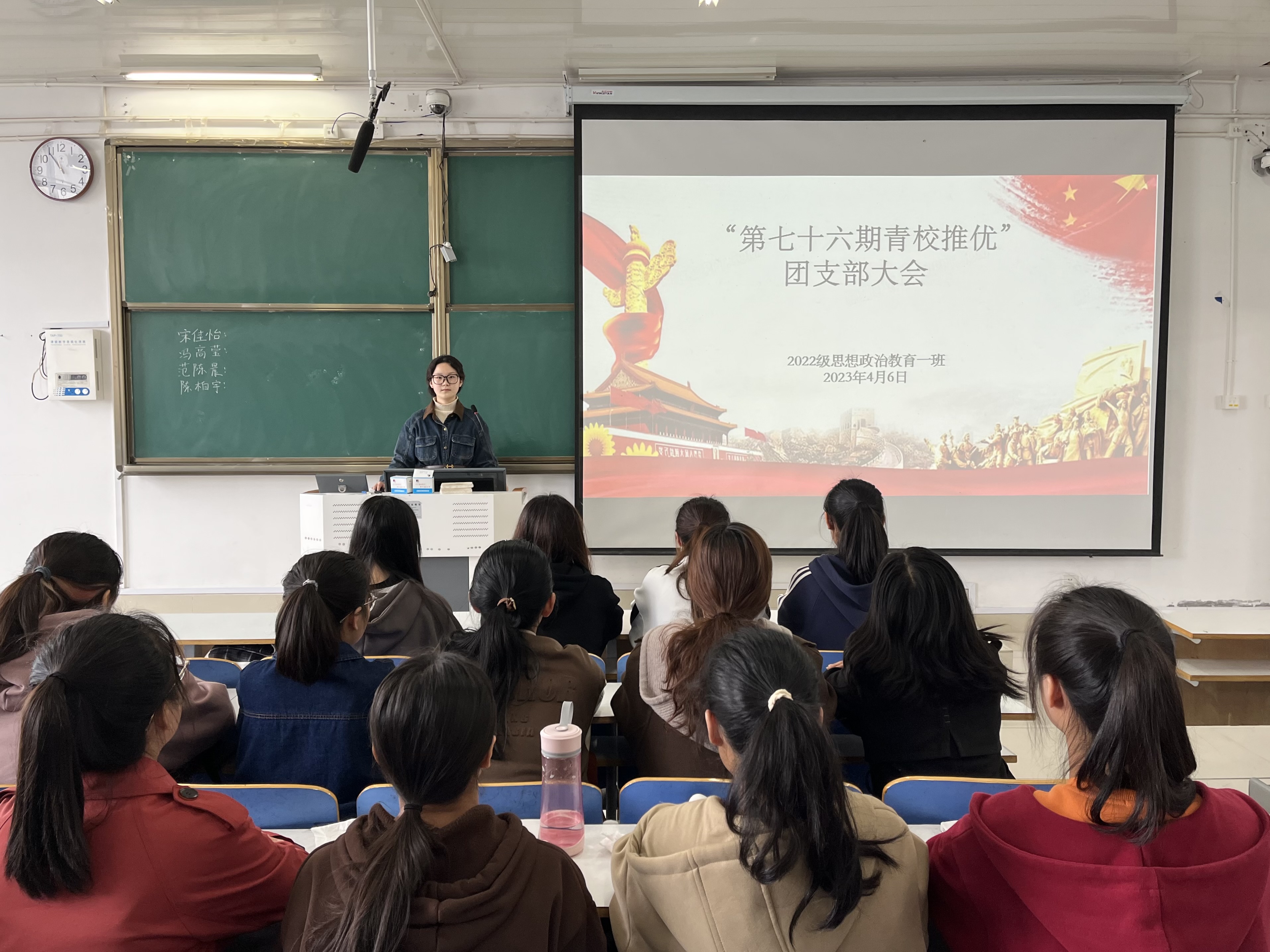 为选出第七十六期青校推优人员,进一步推进团支部工作,4月6日上午,2026年世界杯官网2022级思想政治教育一班在社科楼514教室召开“第七十六期青校推优”团支部大会。2022级思想政治教育一班全体团员参与本次会议,会议由团支书李佳茹主持。